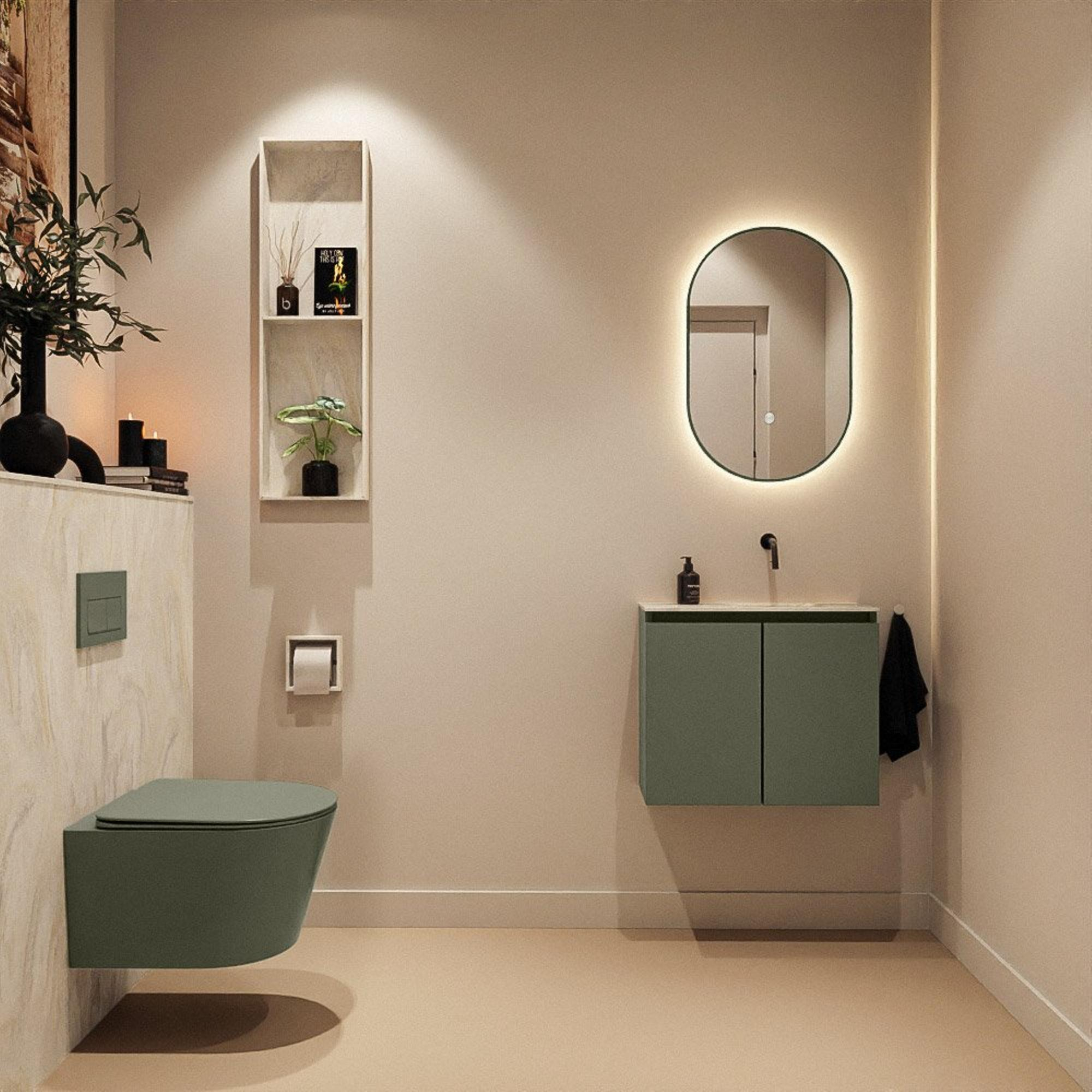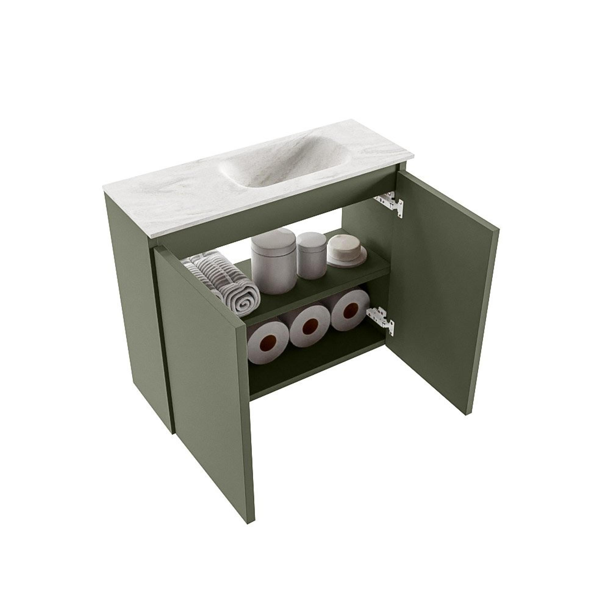 MONDIAZ TURE-DLUX 60cm toiletmeubel Army. EDEN wastafel Ostra positie rechts. Zonder kraangat.