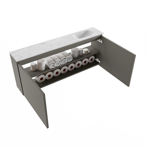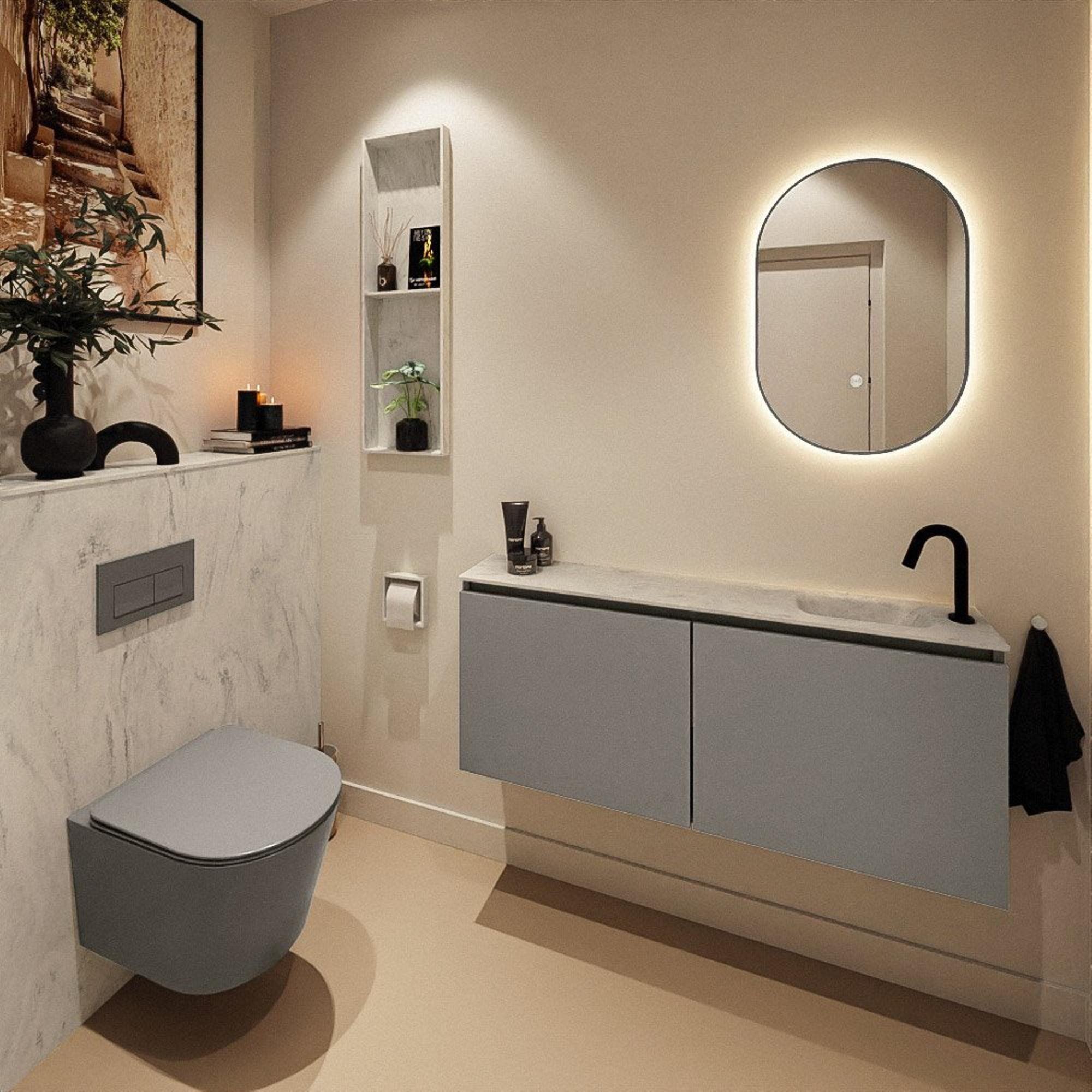 MONDIAZ TURE-DLUX 120cm toiletmeubel Smoke. EDEN wastafel Opalo positie rechts. Met 1 kraangat.