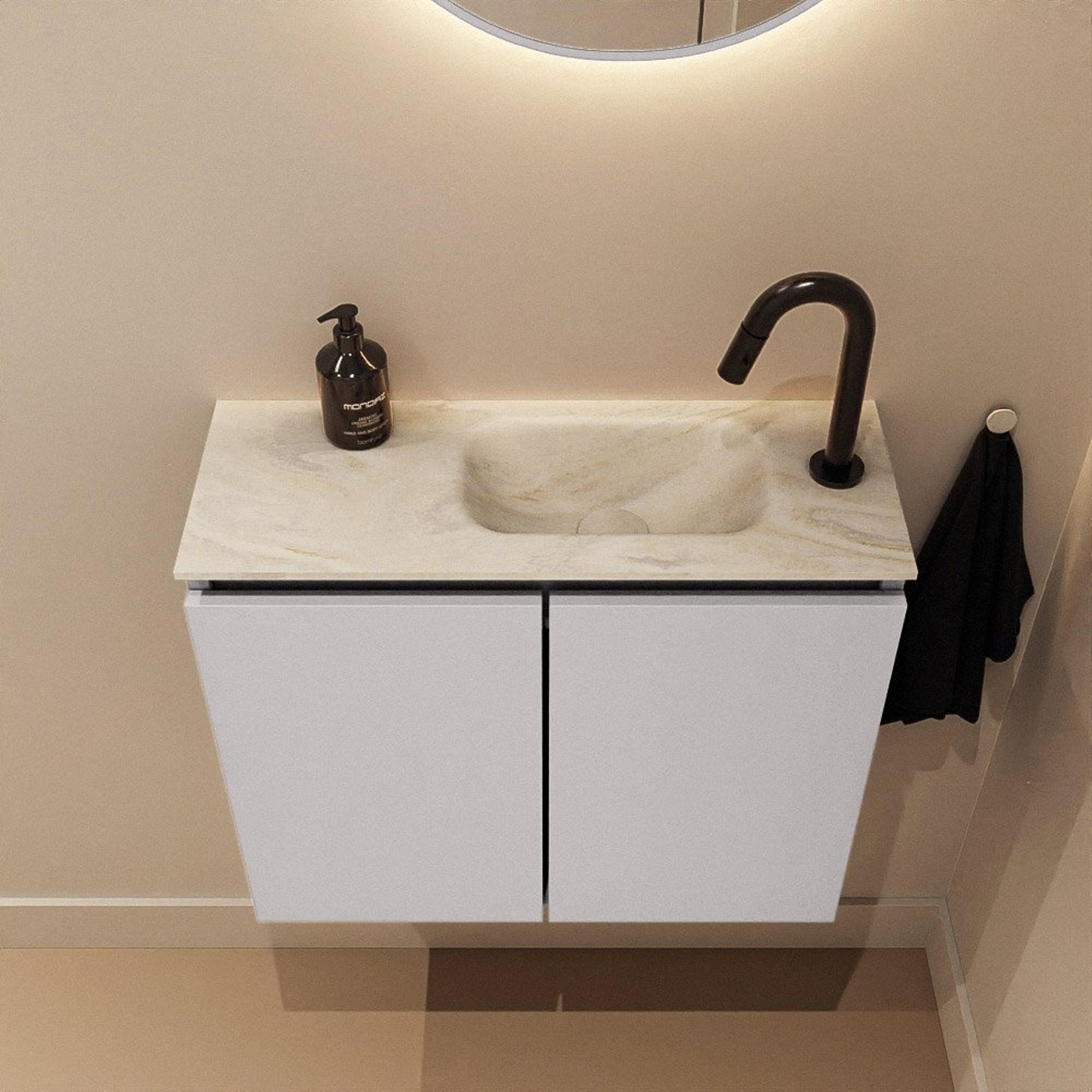 MONDIAZ TURE-DLUX 60cm toiletmeubel Cale. EDEN wastafel Ostra positie rechts. Met 1 kraangat.