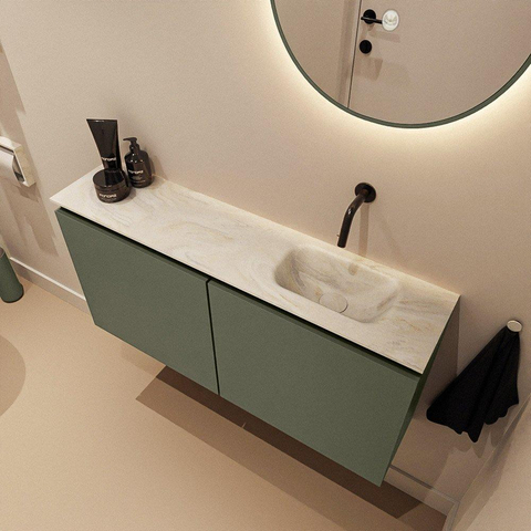MONDIAZ TURE-DLUX 100cm toiletmeubel Army. EDEN wastafel Ostra positie rechts. Zonder kraangat.