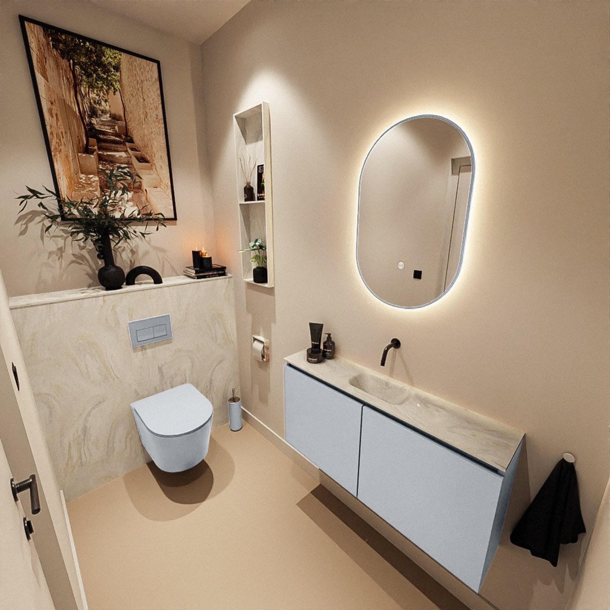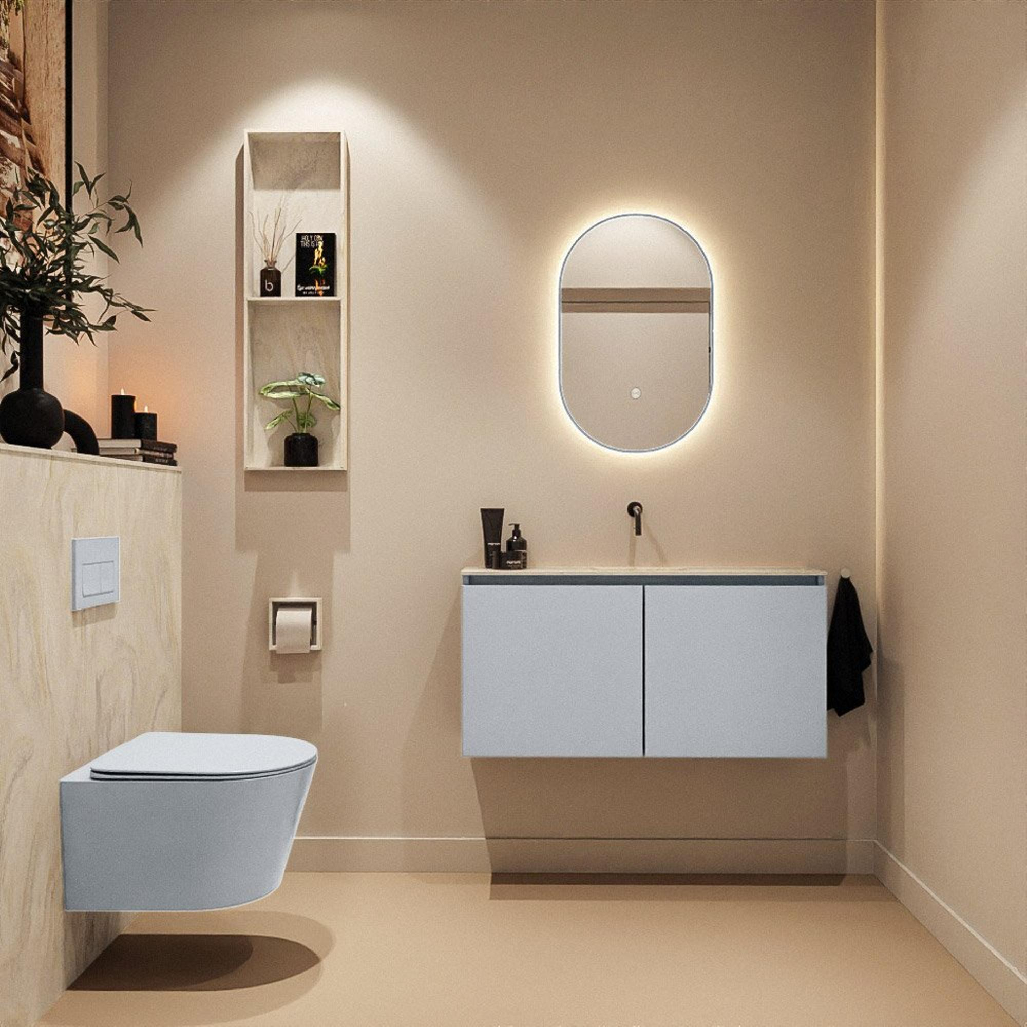 MONDIAZ TURE-DLUX 100cm toiletmeubel Clay. EDEN wastafel Ostra positie midden. Zonder kraangat.