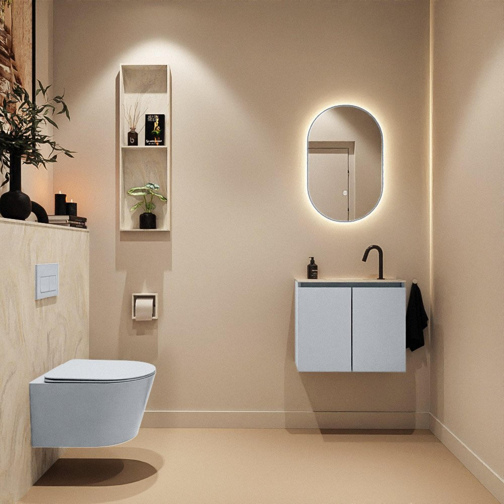 MONDIAZ TURE-DLUX 60cm toiletmeubel Clay. EDEN wastafel Ostra positie midden. Met 1 kraangat.