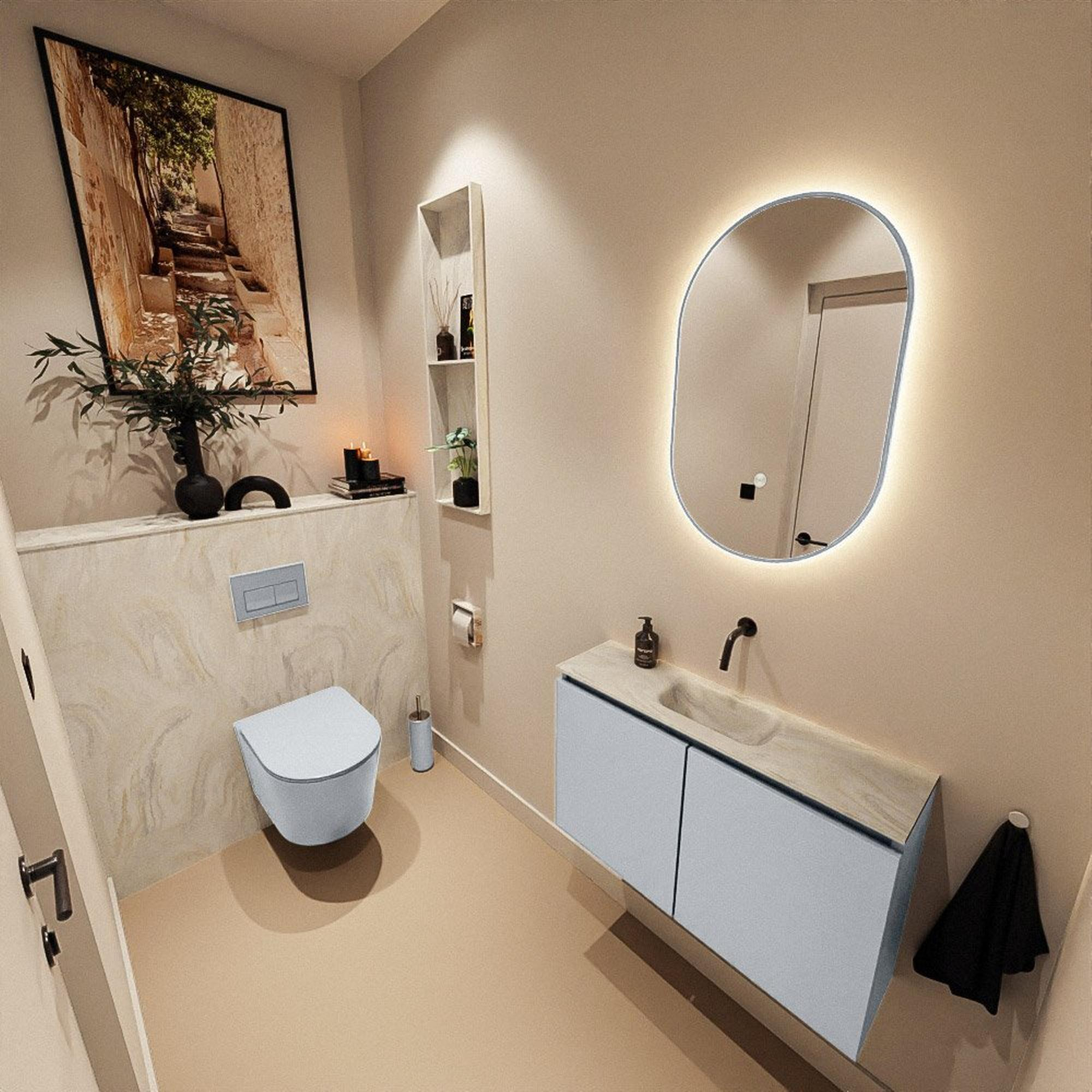 MONDIAZ TURE-DLUX 80cm toiletmeubel Clay. EDEN wastafel Ostra positie midden. Zonder kraangat.