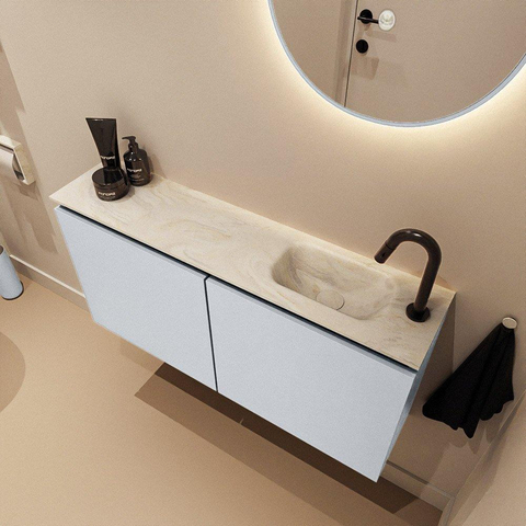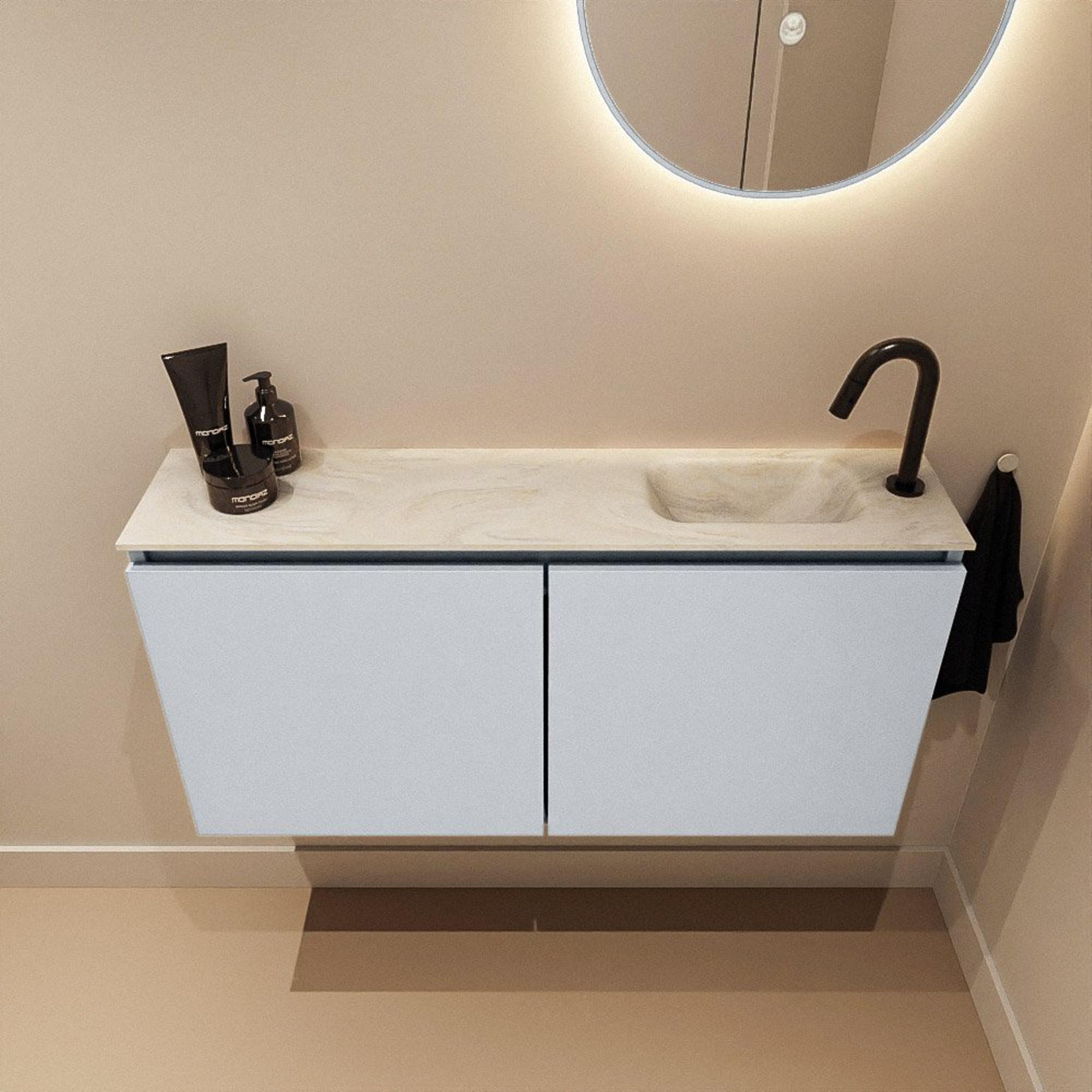 MONDIAZ TURE-DLUX 100cm toiletmeubel Clay. EDEN wastafel Ostra positie rechts. Met 1 kraangat.
