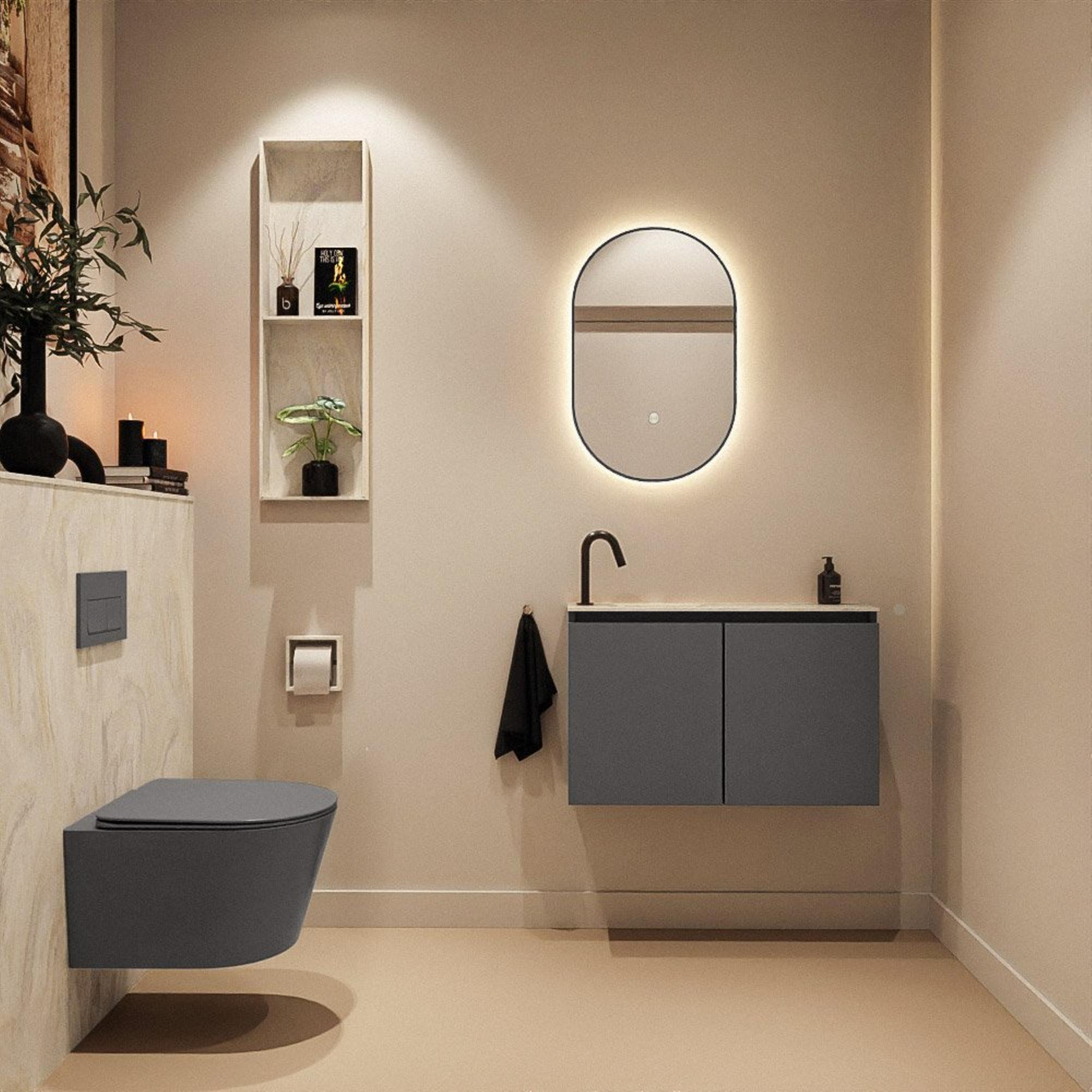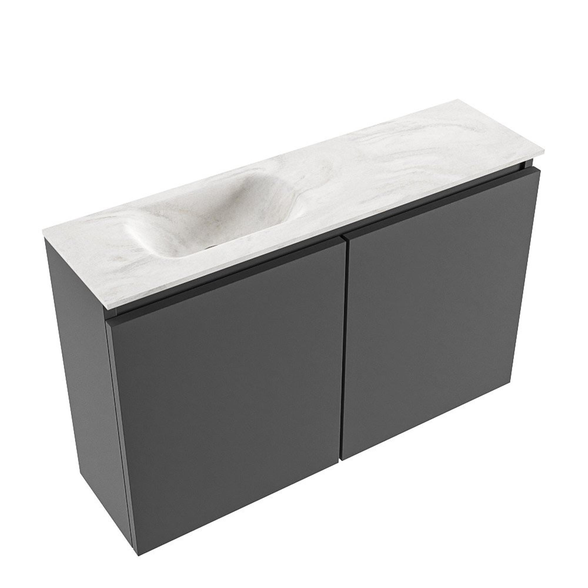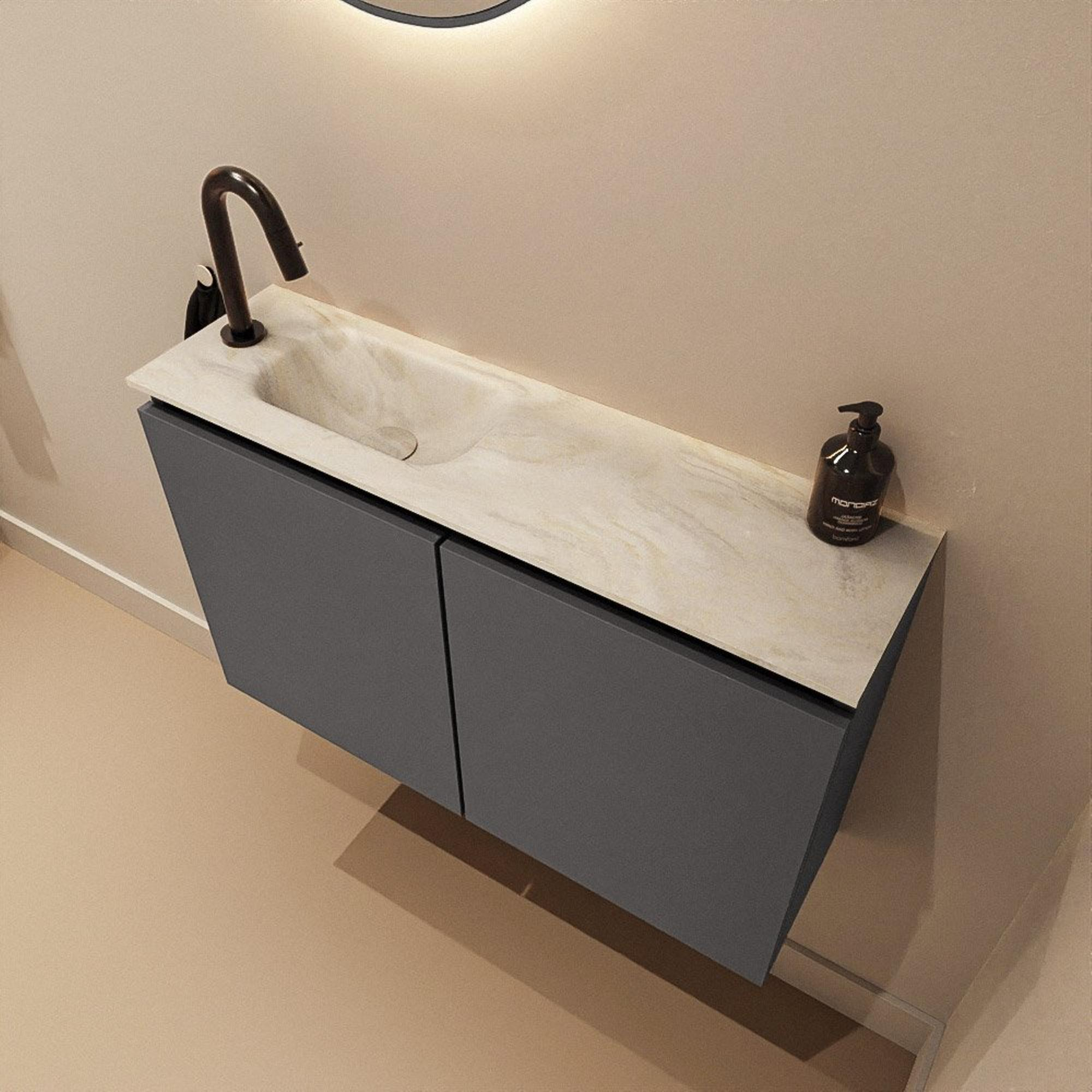 MONDIAZ TURE-DLUX 80cm toiletmeubel Dark Grey. EDEN wastafel Ostra positie links. Met 1 kraangat.