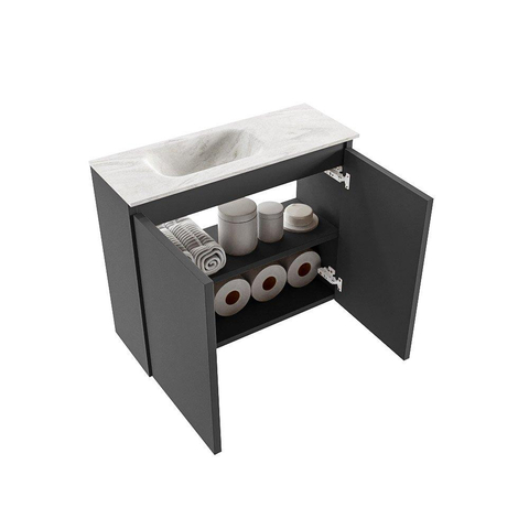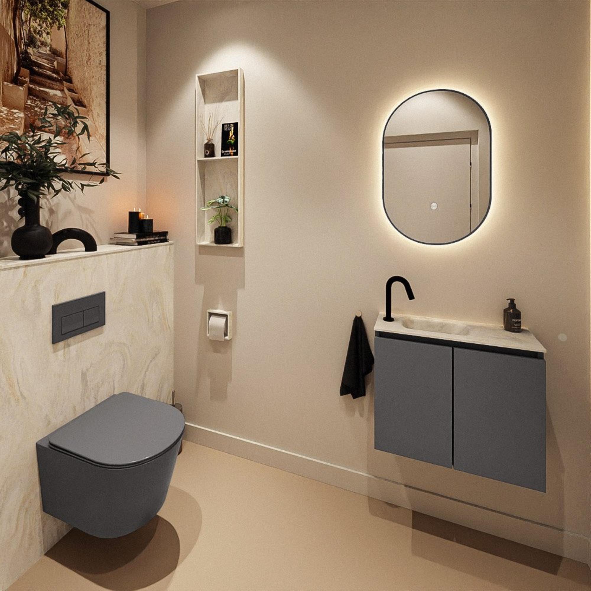 MONDIAZ TURE-DLUX 60cm toiletmeubel Dark Grey. EDEN wastafel Ostra positie links. Met 1 kraangat.