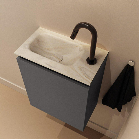 MONDIAZ TURE-DLUX 40cm toiletmeubel Dark Grey. EDEN wastafel Ostra positie links. Met 1 kraangat.