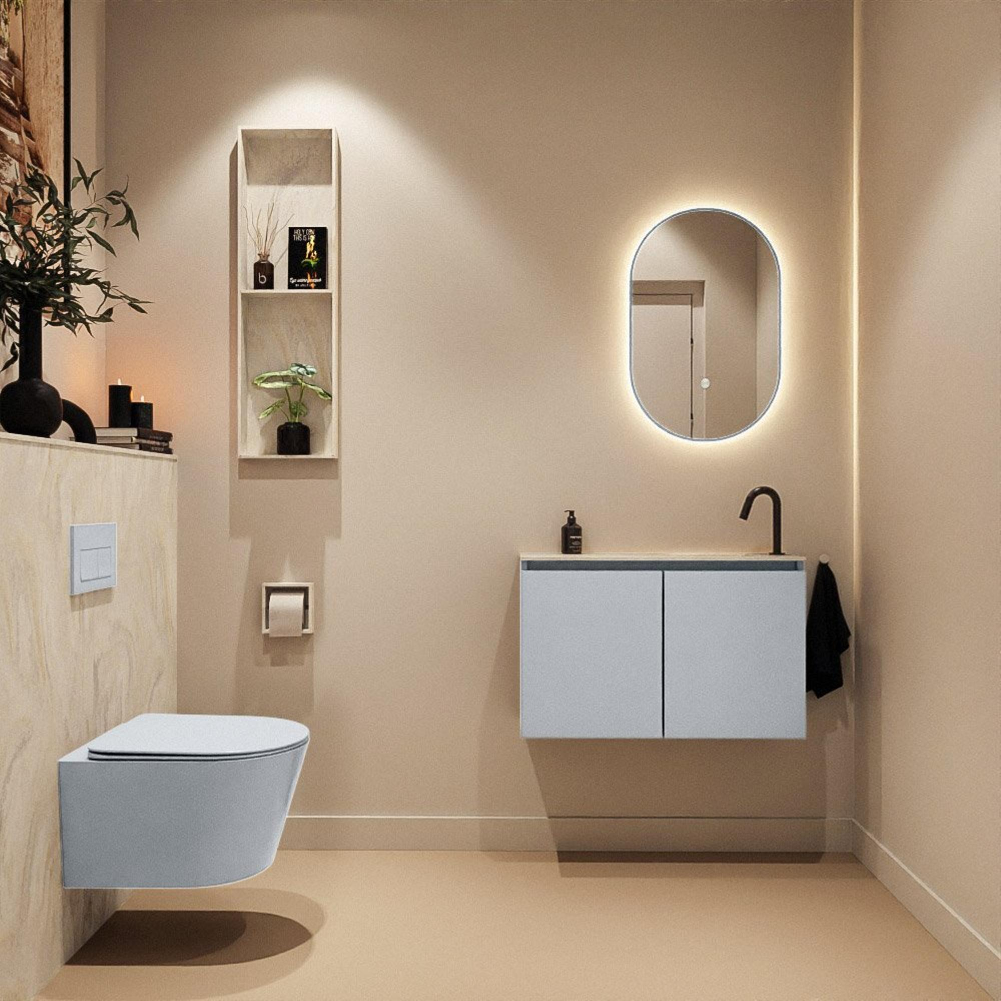 MONDIAZ TURE-DLUX 80cm toiletmeubel Clay. EDEN wastafel Ostra positie rechts. Met 1 kraangat.