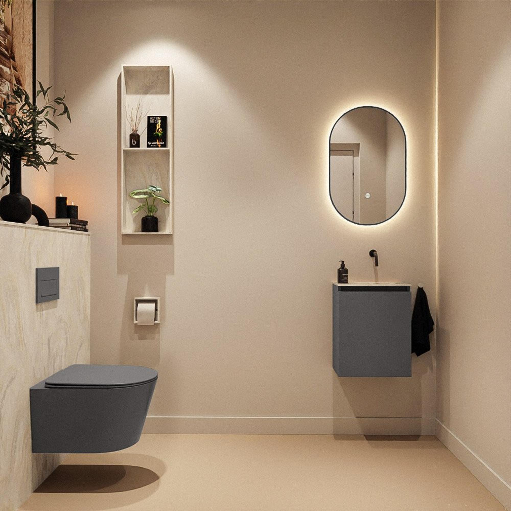 MONDIAZ TURE-DLUX 40cm toiletmeubel Dark Grey. EDEN wastafel Ostra positie rechts. Zonder kraangat.