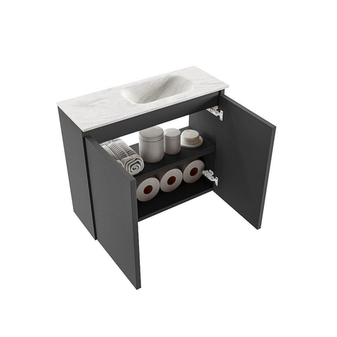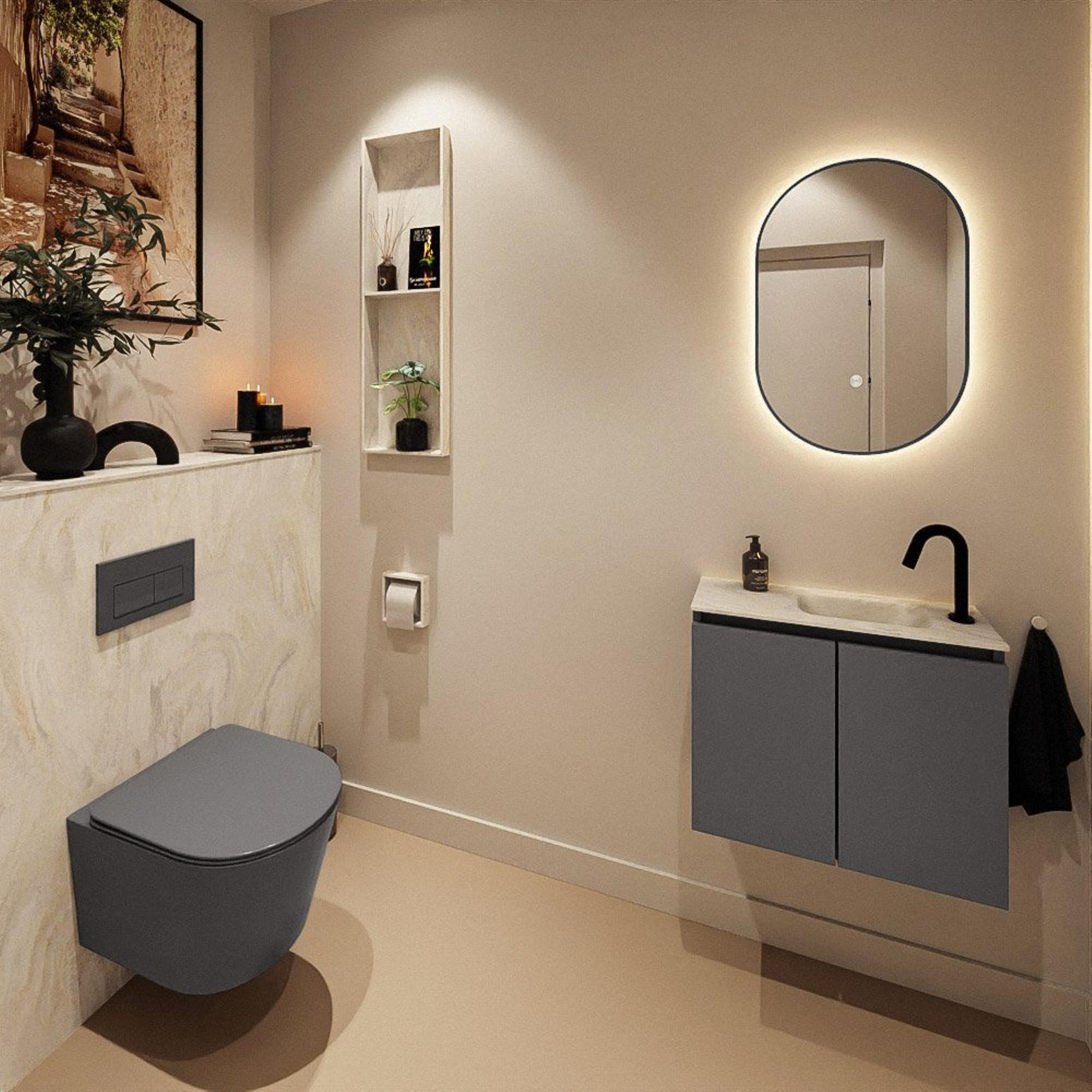 MONDIAZ TURE-DLUX 60cm toiletmeubel Dark Grey. EDEN wastafel Ostra positie rechts. Met 1 kraangat.