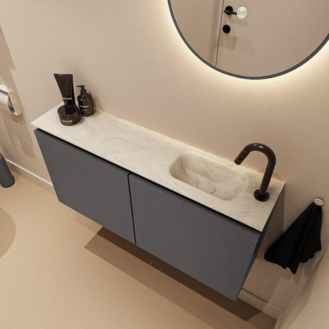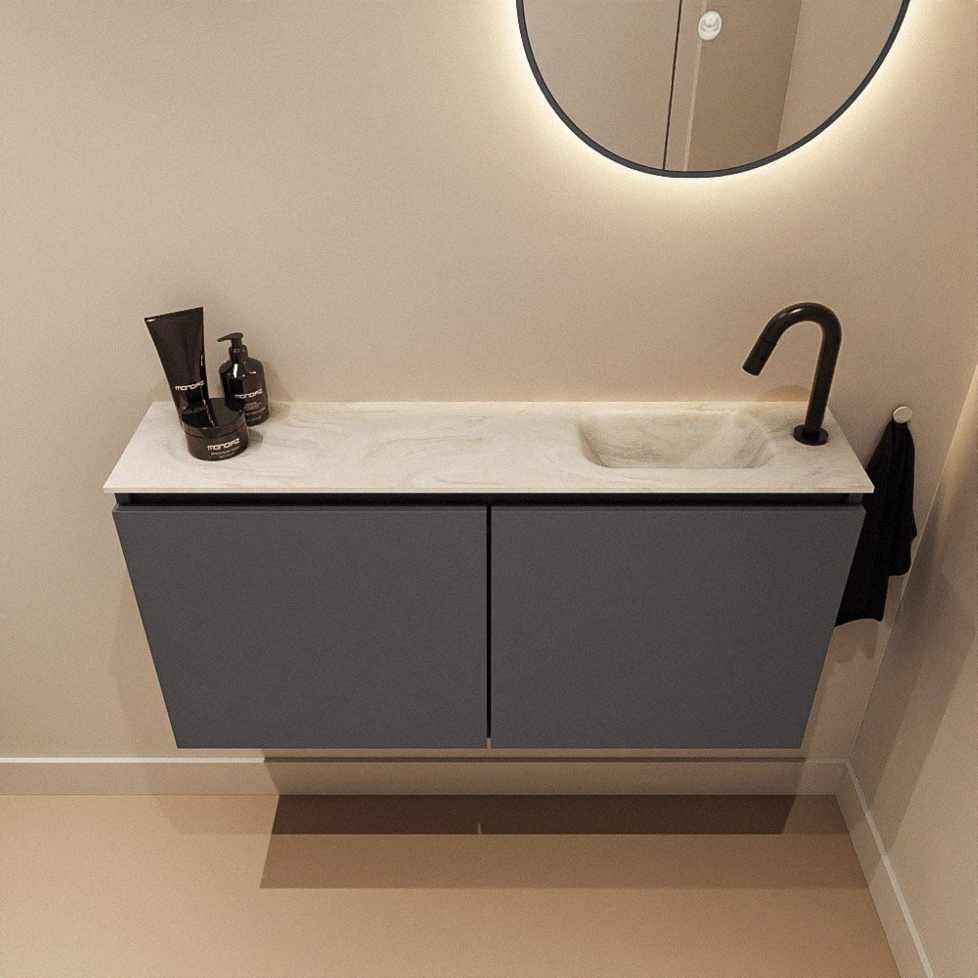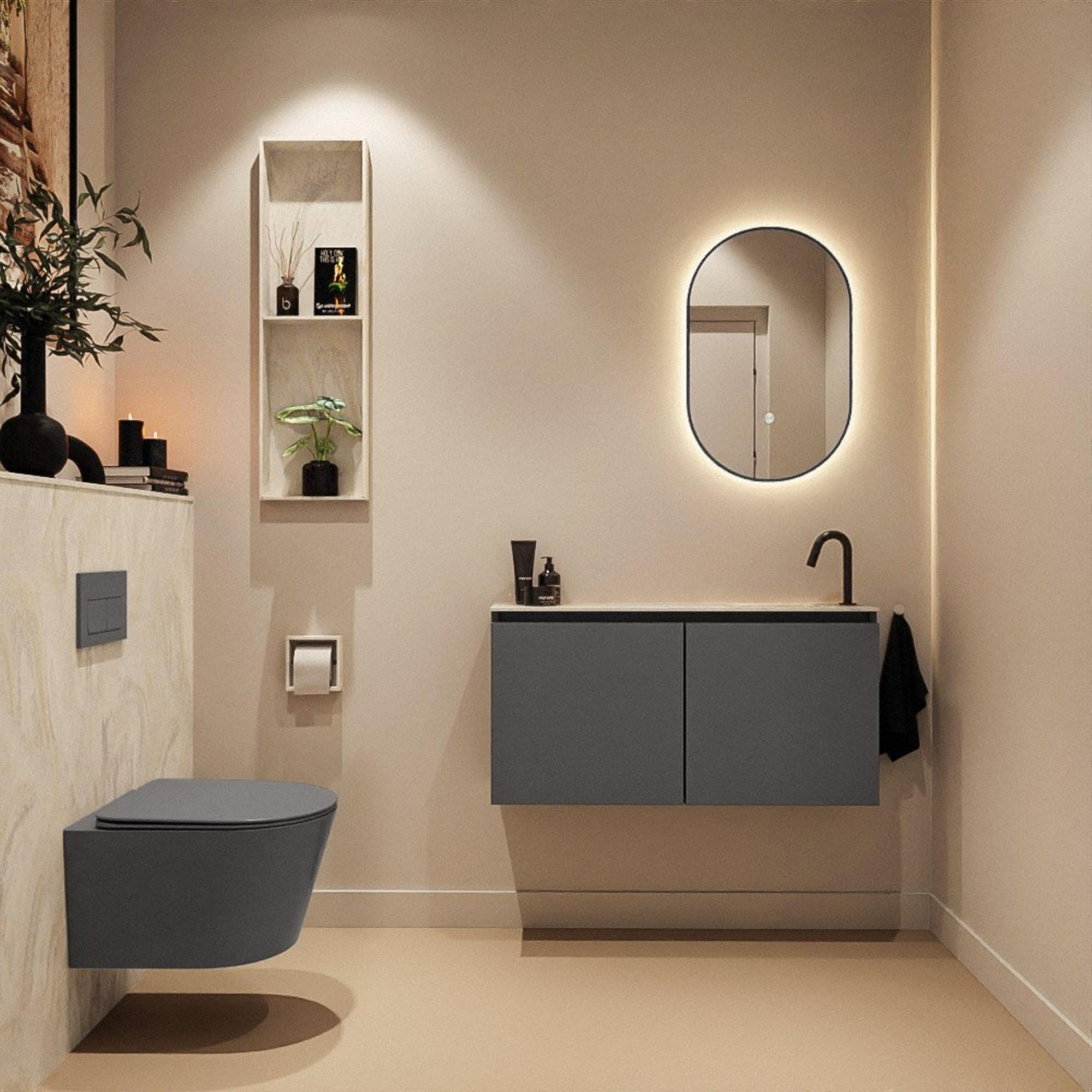 MONDIAZ TURE-DLUX 100cm toiletmeubel Dark Grey. EDEN wastafel Ostra positie rechts. Met 1 kraangat.