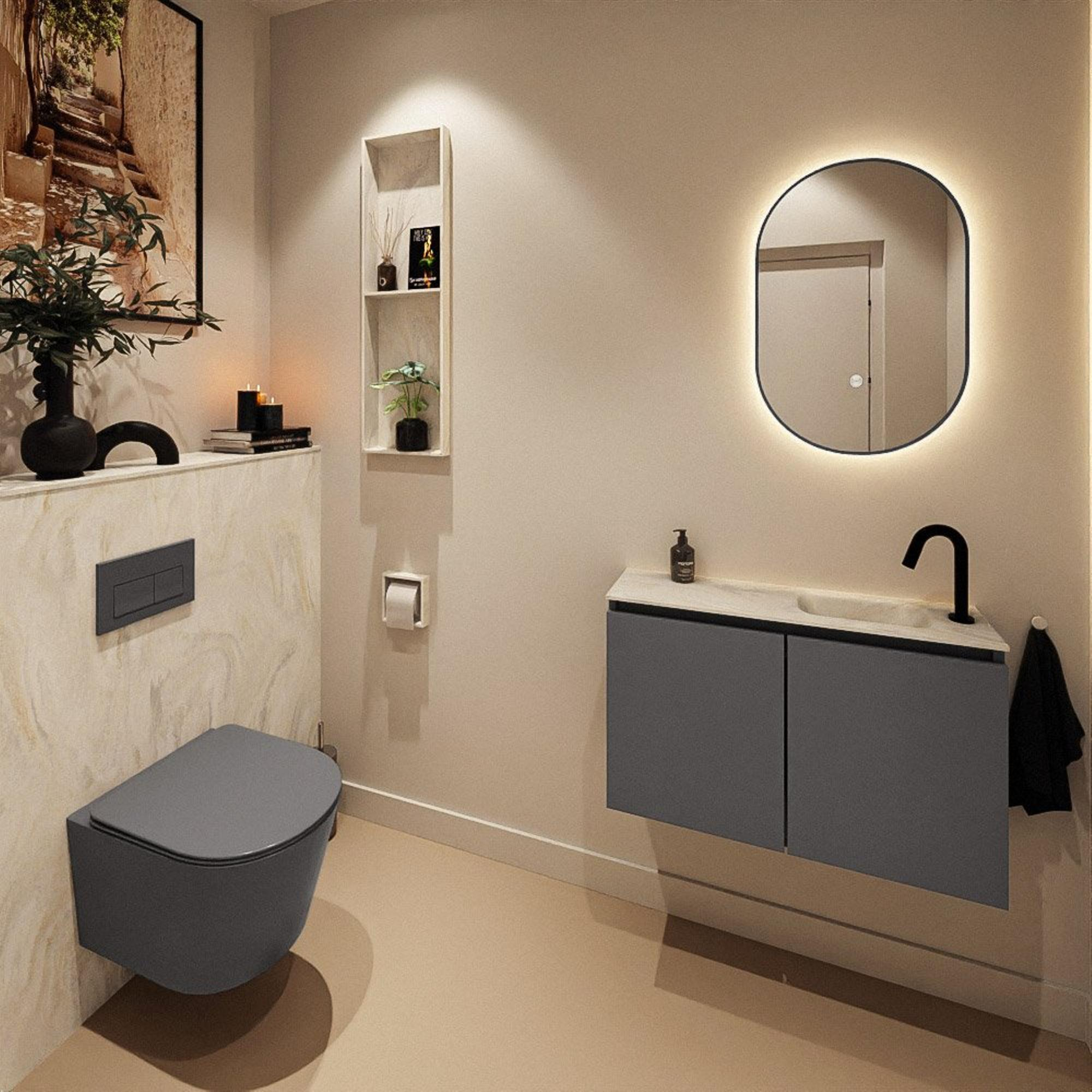 MONDIAZ TURE-DLUX 80cm toiletmeubel Dark Grey. EDEN wastafel Ostra positie rechts. Met 1 kraangat.