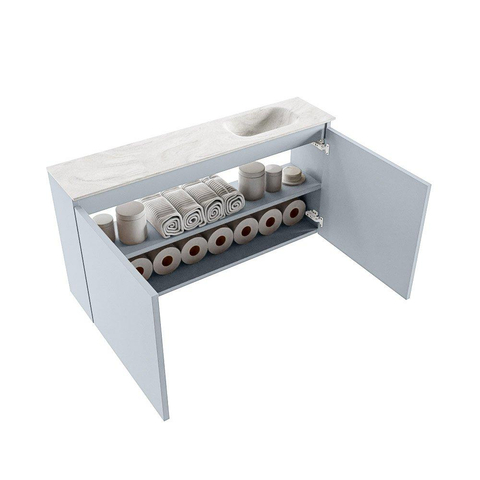 MONDIAZ TURE-DLUX 100cm toiletmeubel Clay. EDEN wastafel Ostra positie rechts. Zonder kraangat.