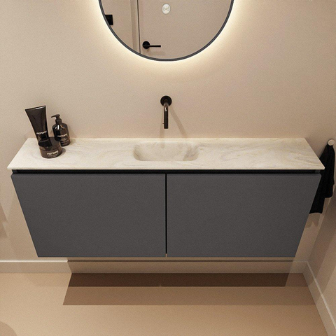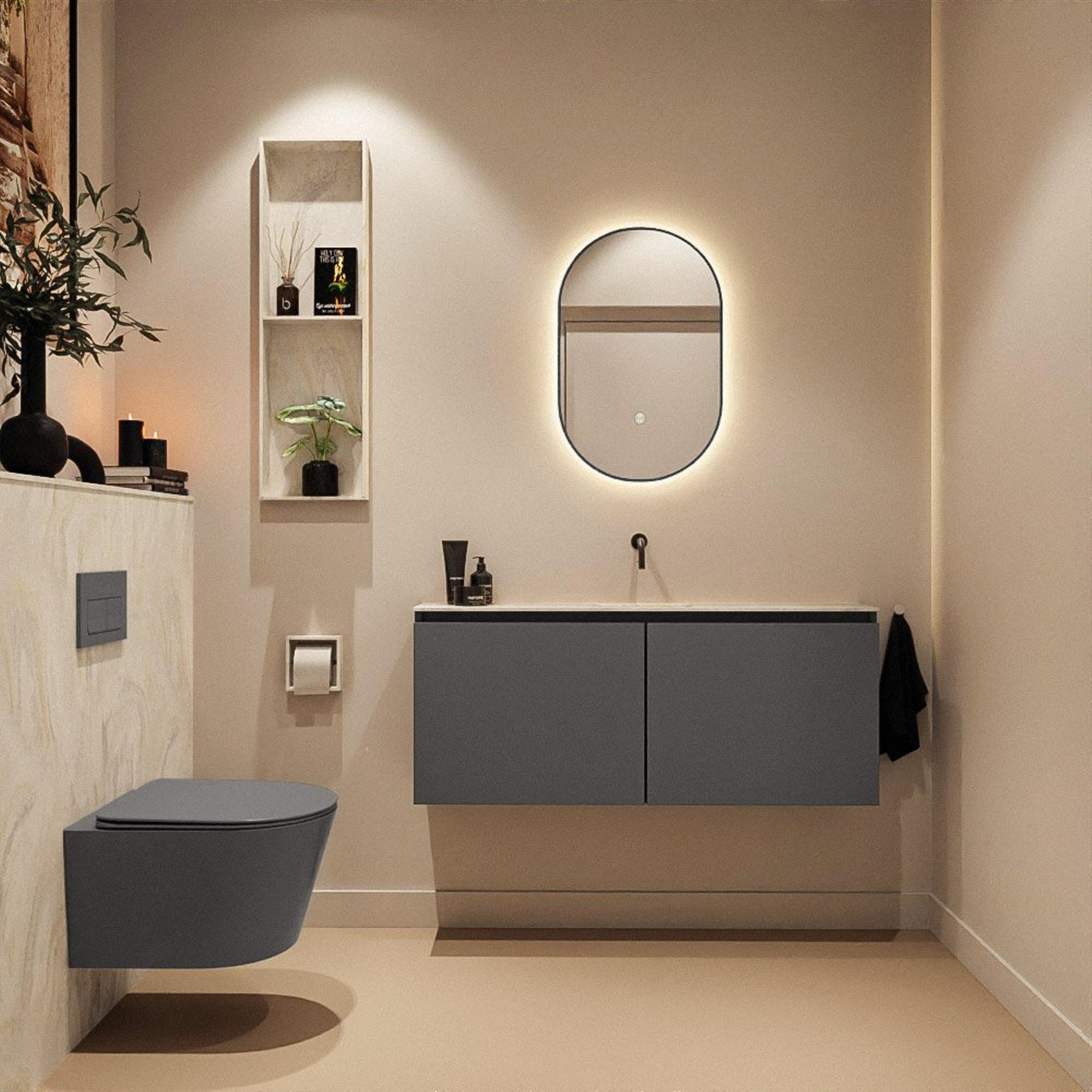 MONDIAZ TURE-DLUX 120cm toiletmeubel Dark Grey. EDEN wastafel Ostra positie midden. Zonder kraangat.