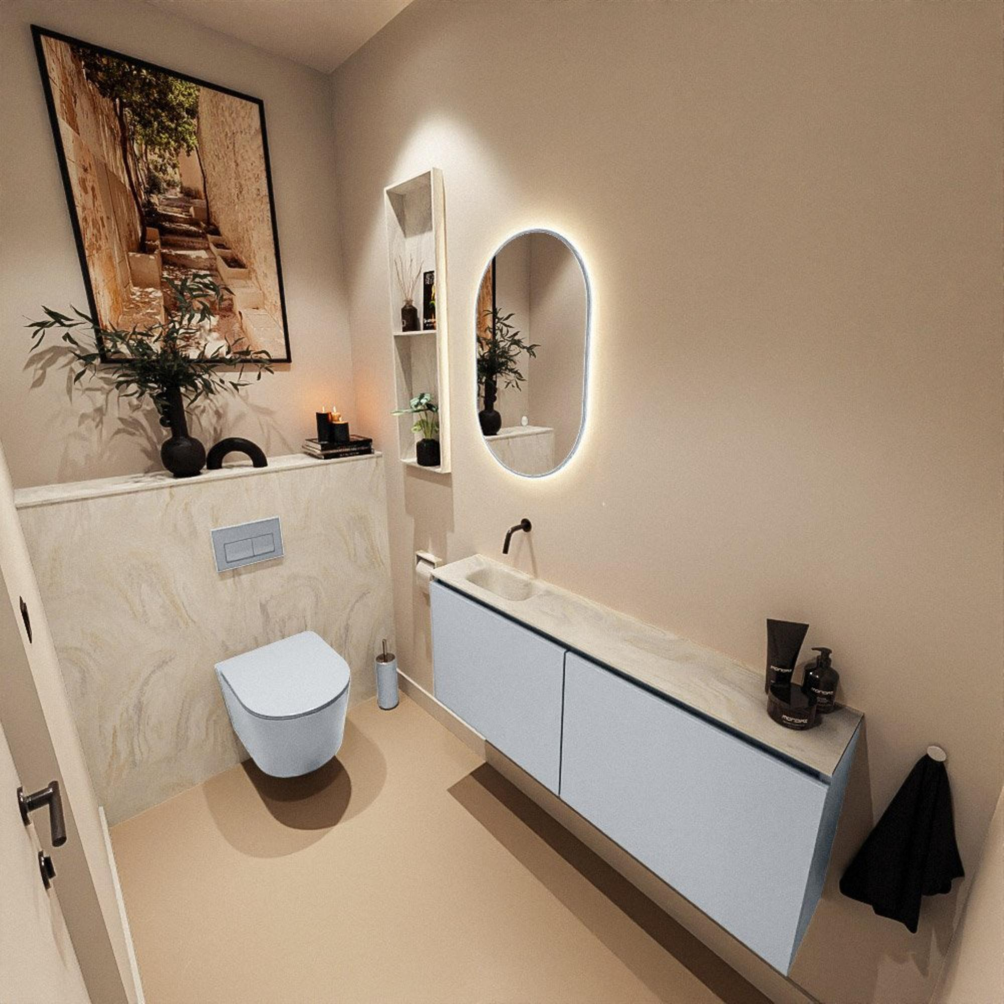 MONDIAZ TURE-DLUX 120cm toiletmeubel Clay. EDEN wastafel Ostra positie links. Zonder kraangat.