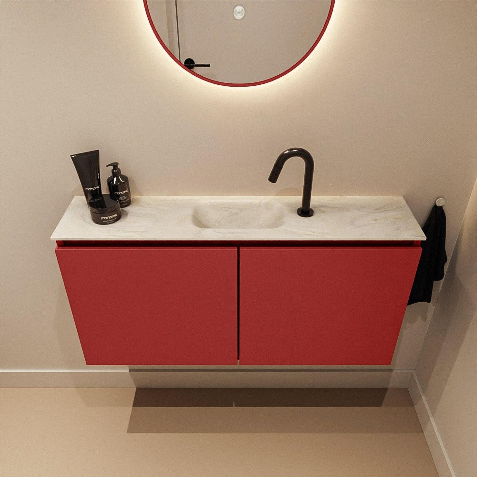 MONDIAZ TURE-DLUX 100cm toiletmeubel Fire. EDEN wastafel Ostra positie midden. Met 1 kraangat.