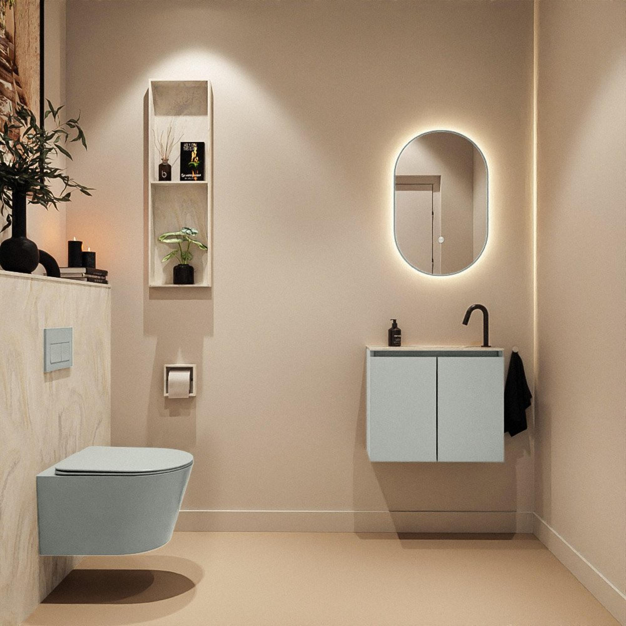 MONDIAZ TURE-DLUX 60cm toiletmeubel Greey. EDEN wastafel Ostra positie rechts. Met 1 kraangat.