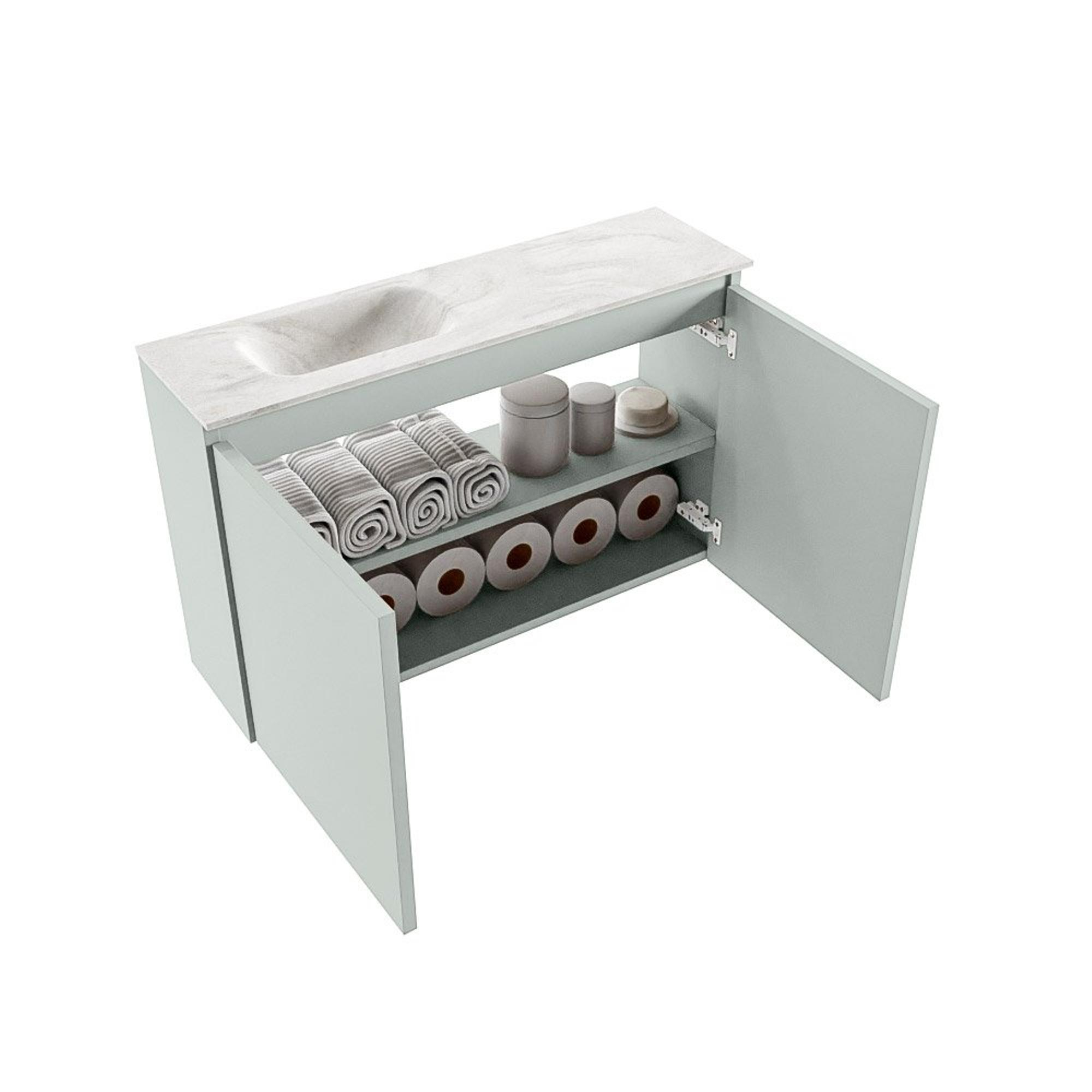 MONDIAZ TURE-DLUX 80cm toiletmeubel Greey. EDEN wastafel Ostra positie links. Zonder kraangat.