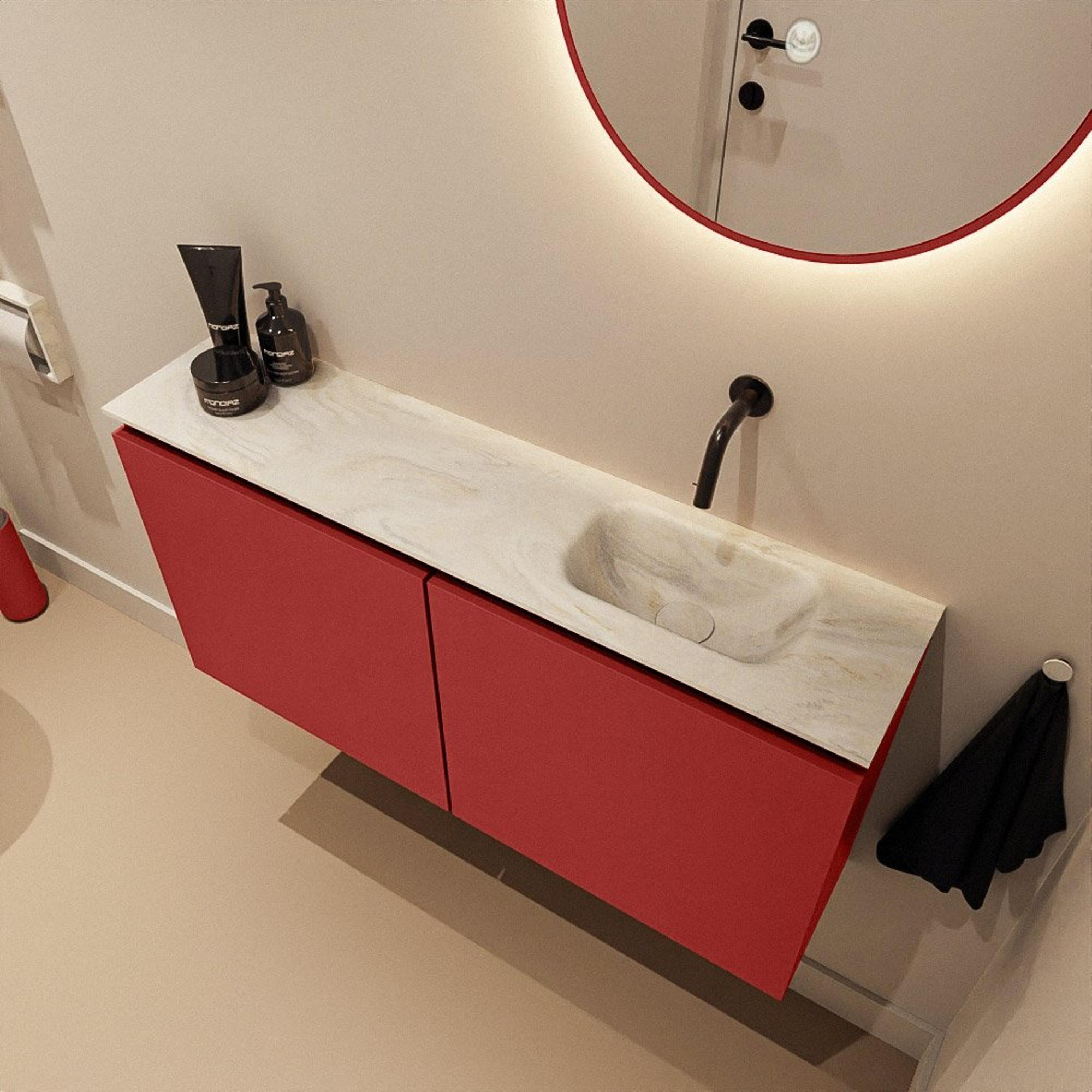 MONDIAZ TURE-DLUX 100cm toiletmeubel Fire. EDEN wastafel Ostra positie rechts. Zonder kraangat.