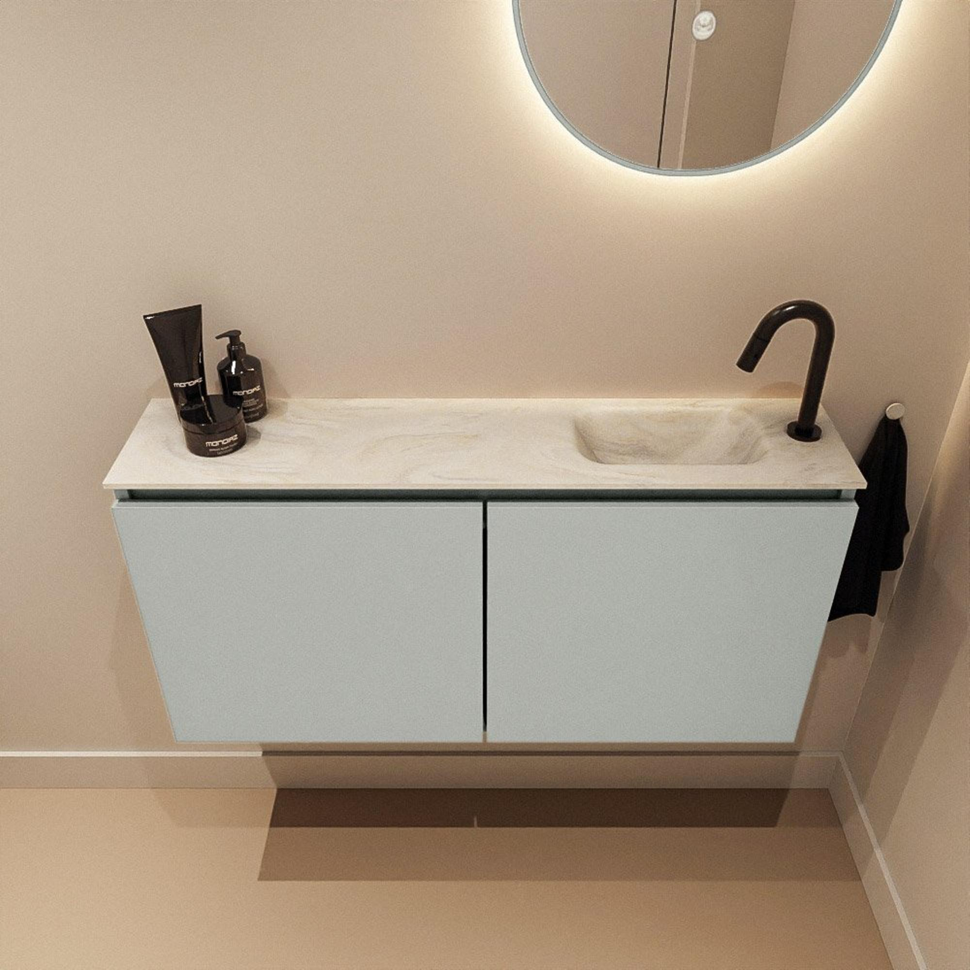 MONDIAZ TURE-DLUX 100cm toiletmeubel Greey. EDEN wastafel Ostra positie rechts. Met 1 kraangat.