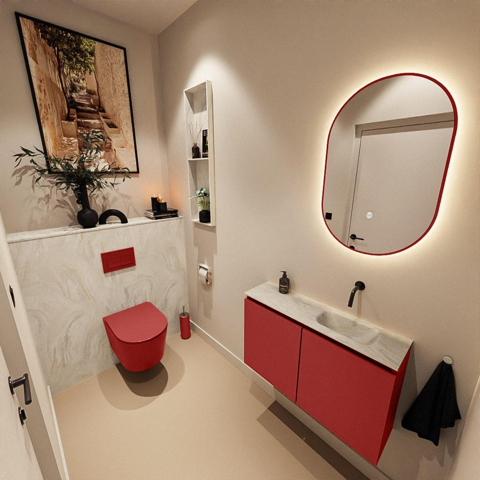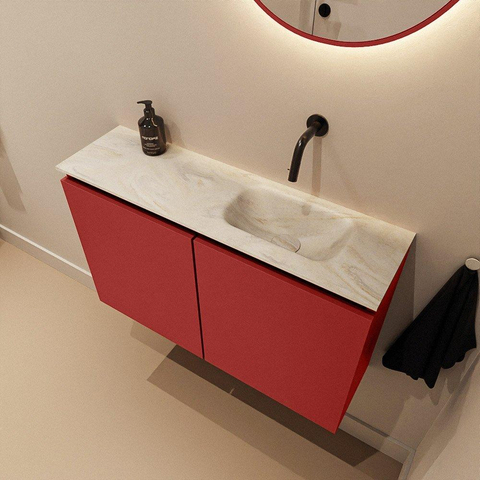 MONDIAZ TURE-DLUX 80cm toiletmeubel Fire. EDEN wastafel Ostra positie rechts. Zonder kraangat.