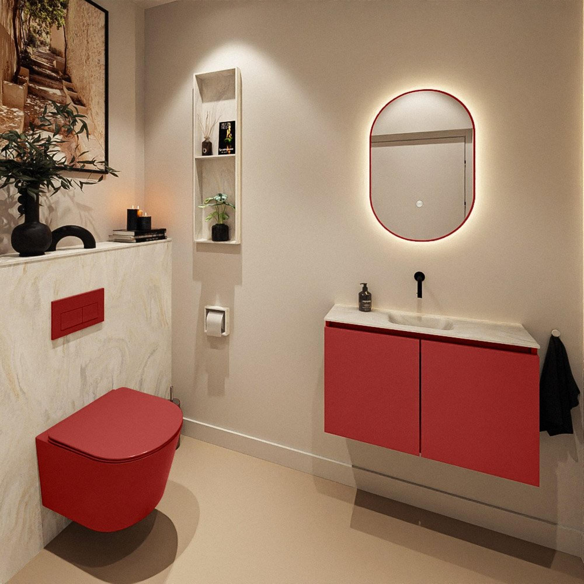 MONDIAZ TURE-DLUX 80cm toiletmeubel Fire. EDEN wastafel Ostra positie midden. Zonder kraangat.