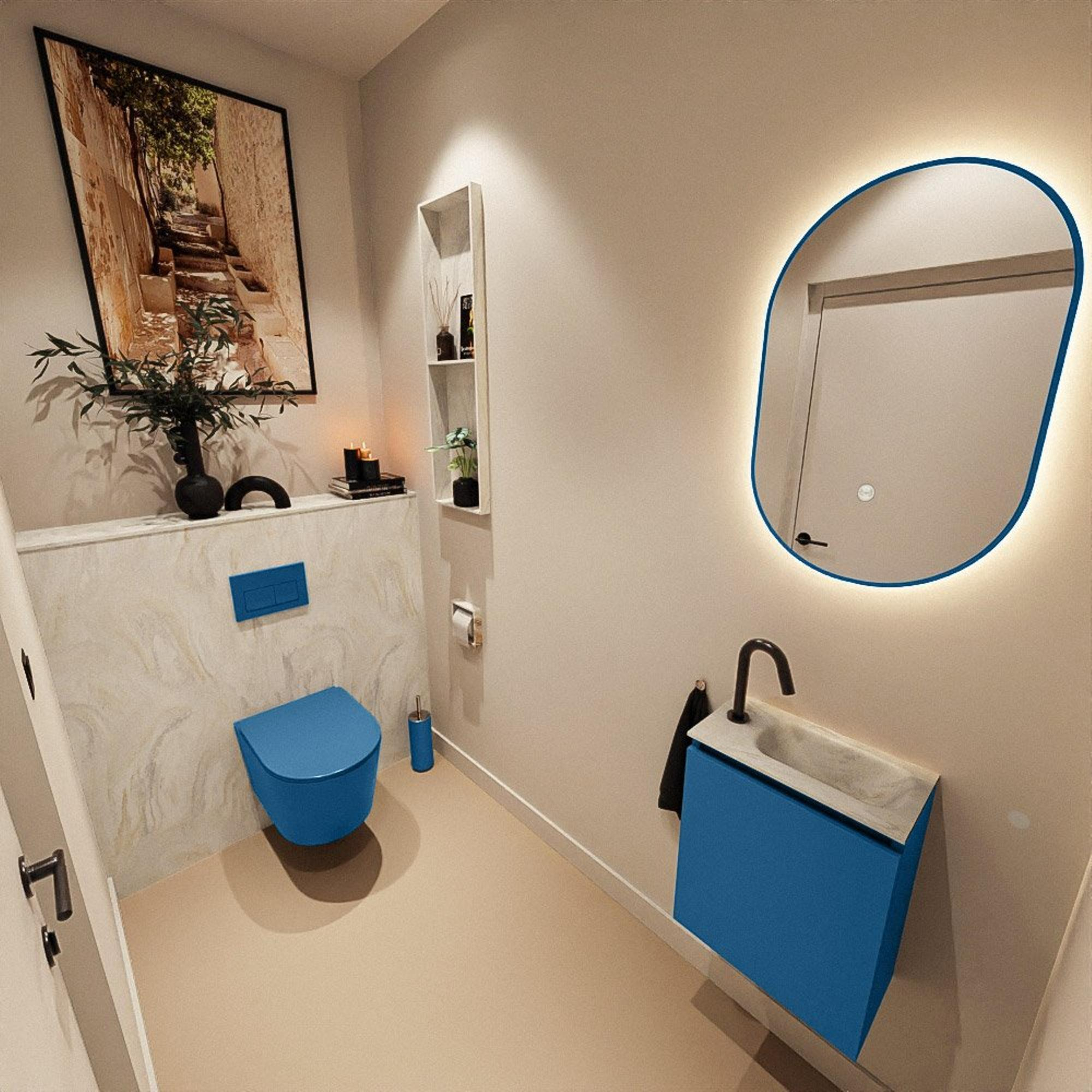 MONDIAZ TURE-DLUX 40cm toiletmeubel Jeans. EDEN wastafel Ostra positie rechts. Met 1 kraangat.