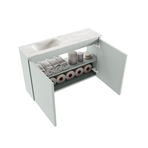 MONDIAZ TURE-DLUX 80cm toiletmeubel Greey. EDEN wastafel Ostra positie links. Met 1 kraangat.