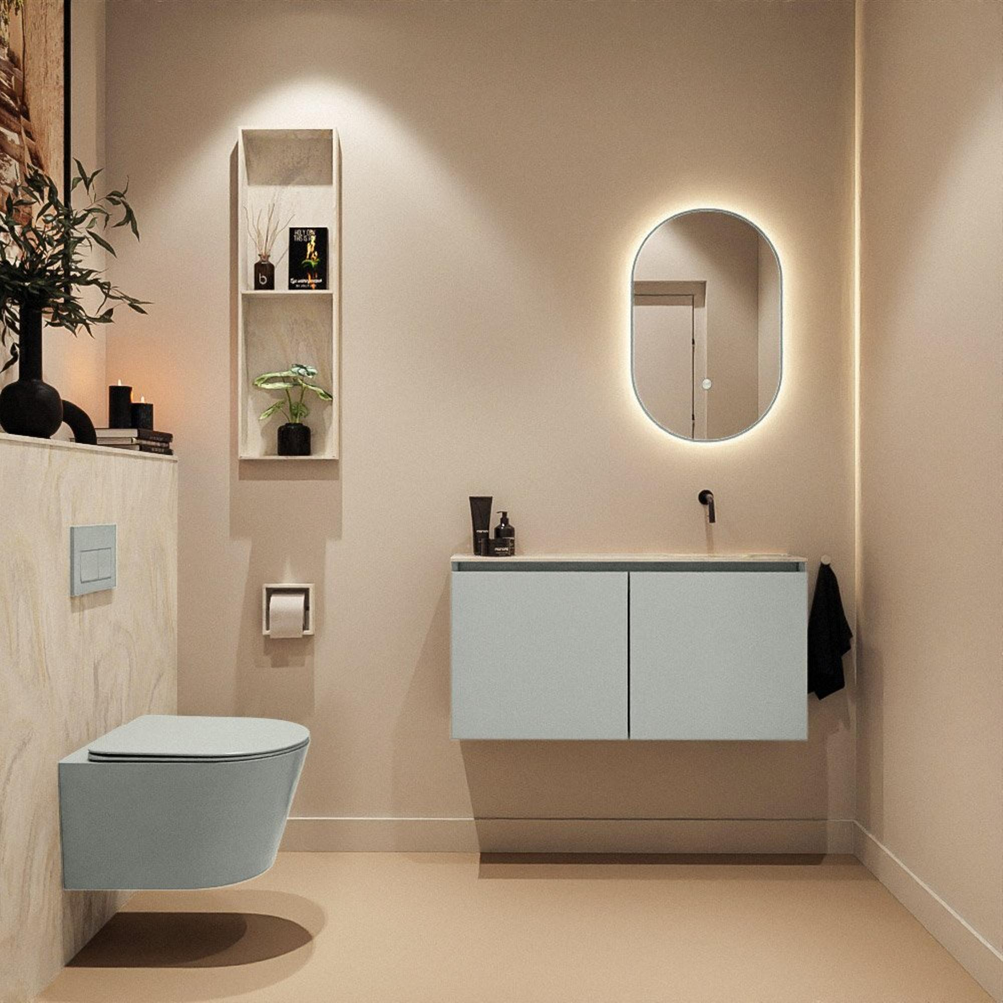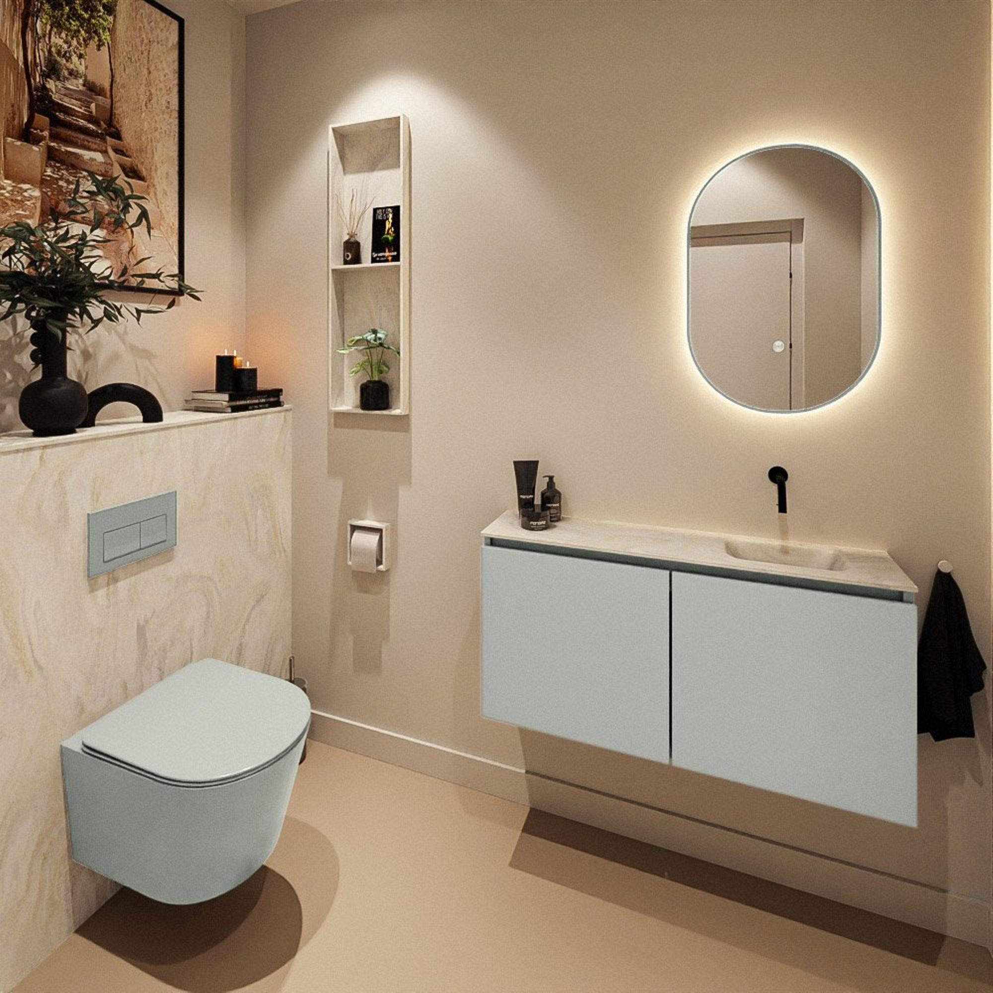 MONDIAZ TURE-DLUX 100cm toiletmeubel Greey. EDEN wastafel Ostra positie rechts. Zonder kraangat.