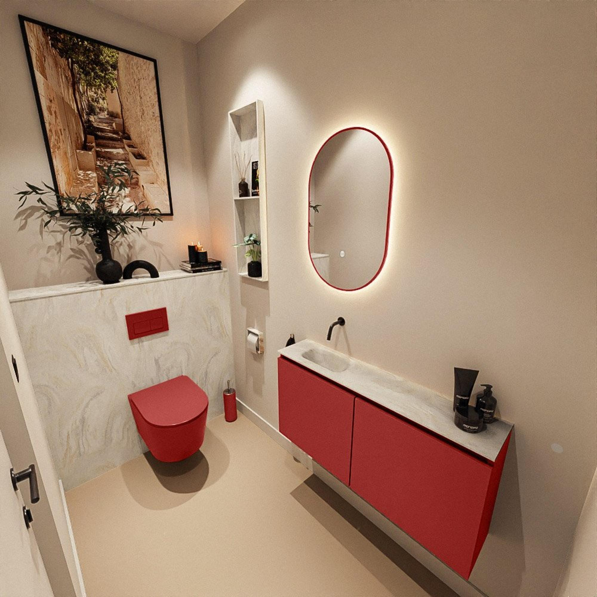 MONDIAZ TURE-DLUX 100cm toiletmeubel Fire. EDEN wastafel Ostra positie links. Zonder kraangat.