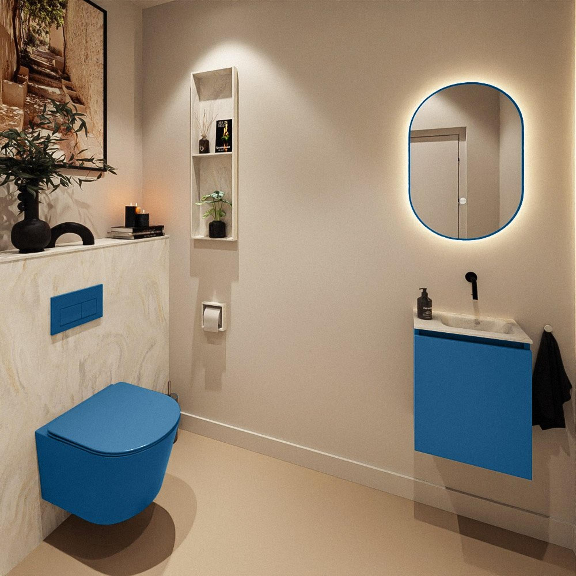 MONDIAZ TURE-DLUX 40cm toiletmeubel Jeans. EDEN wastafel Ostra positie rechts. Zonder kraangat.