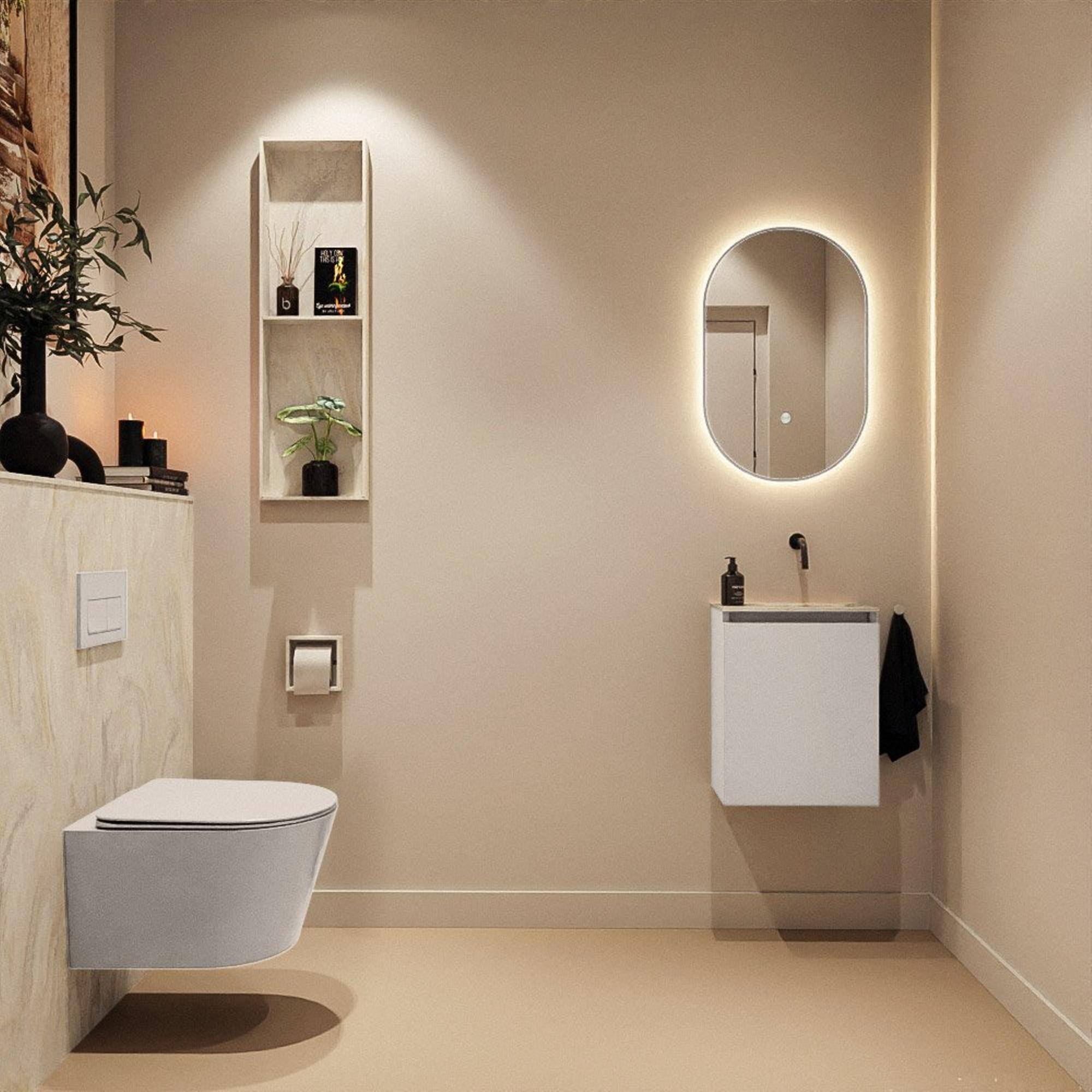 MONDIAZ TURE-DLUX 40cm toiletmeubel Linen. EDEN wastafel Ostra positie rechts. Zonder kraangat.