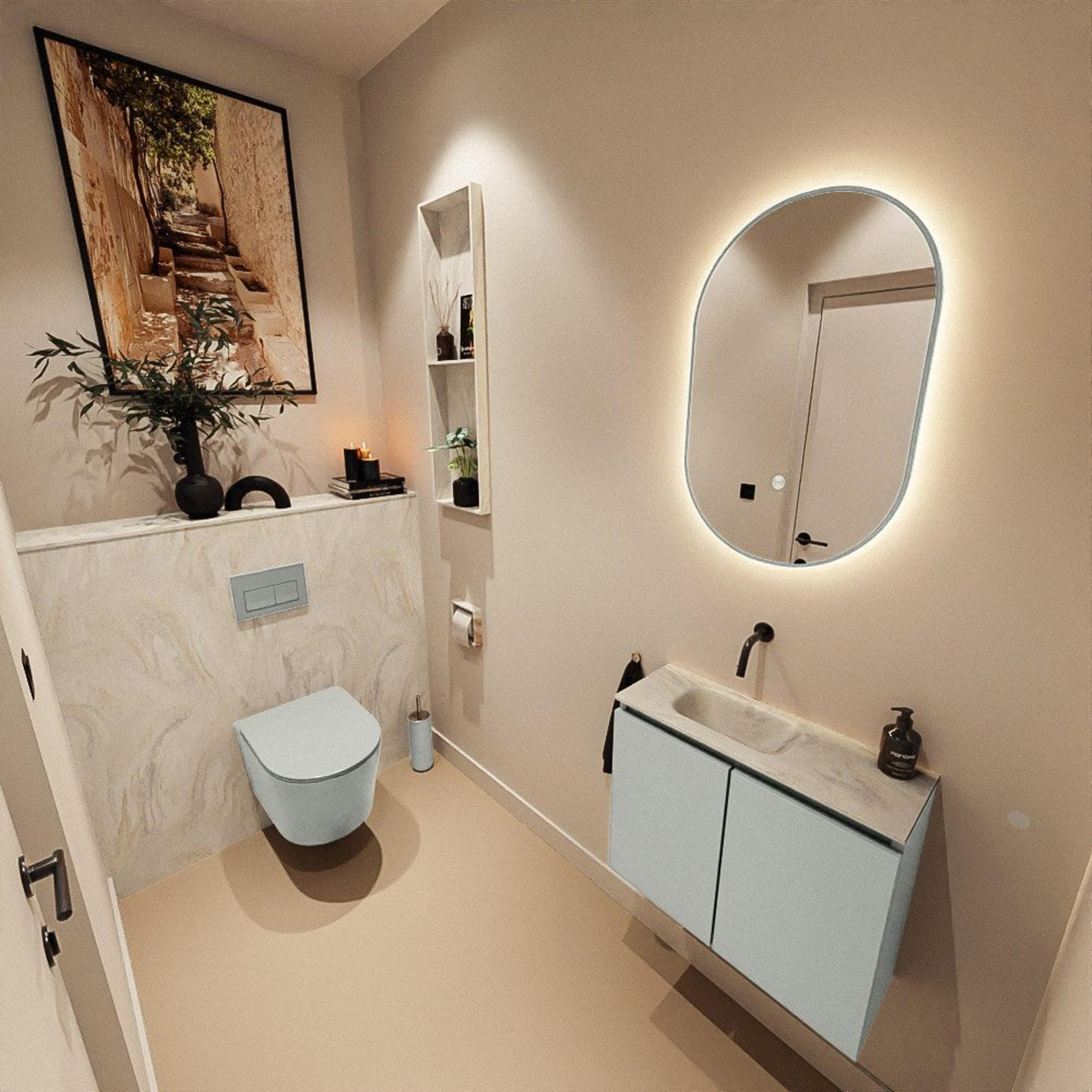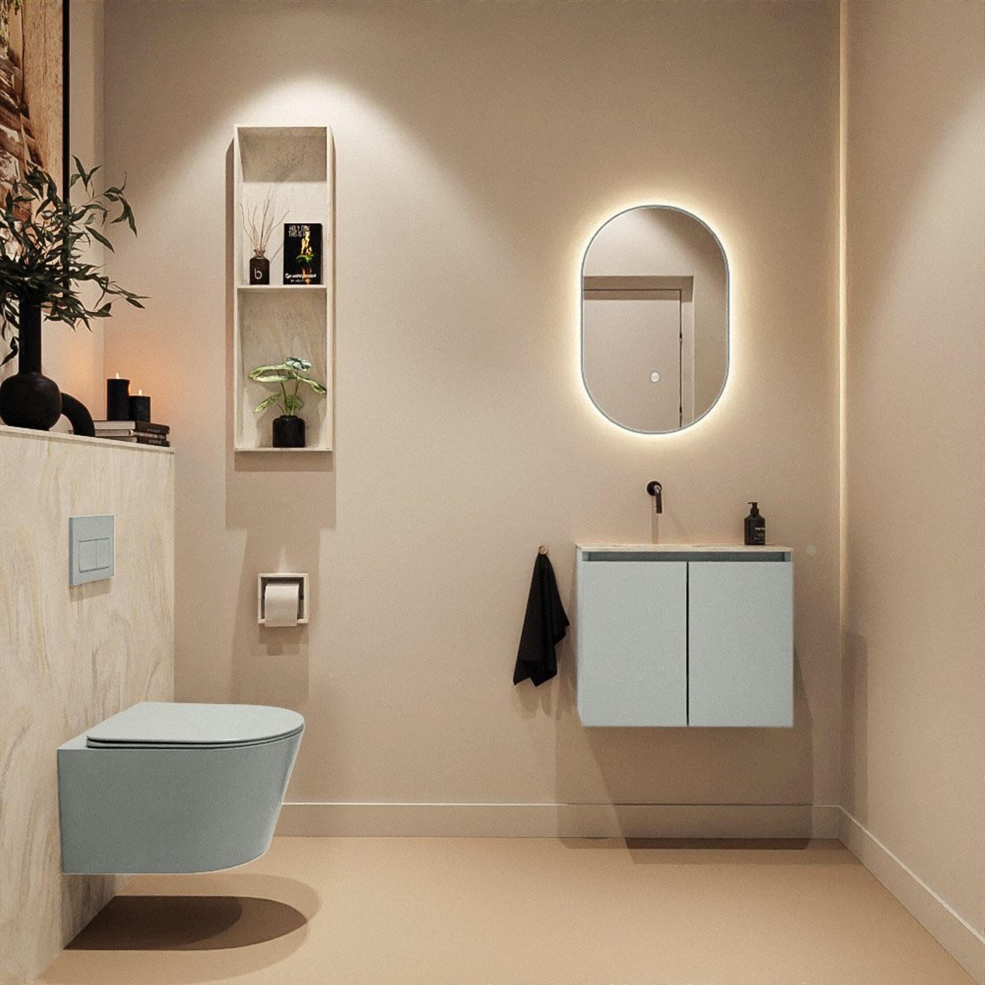 MONDIAZ TURE-DLUX 60cm toiletmeubel Greey. EDEN wastafel Ostra positie links. Zonder kraangat.