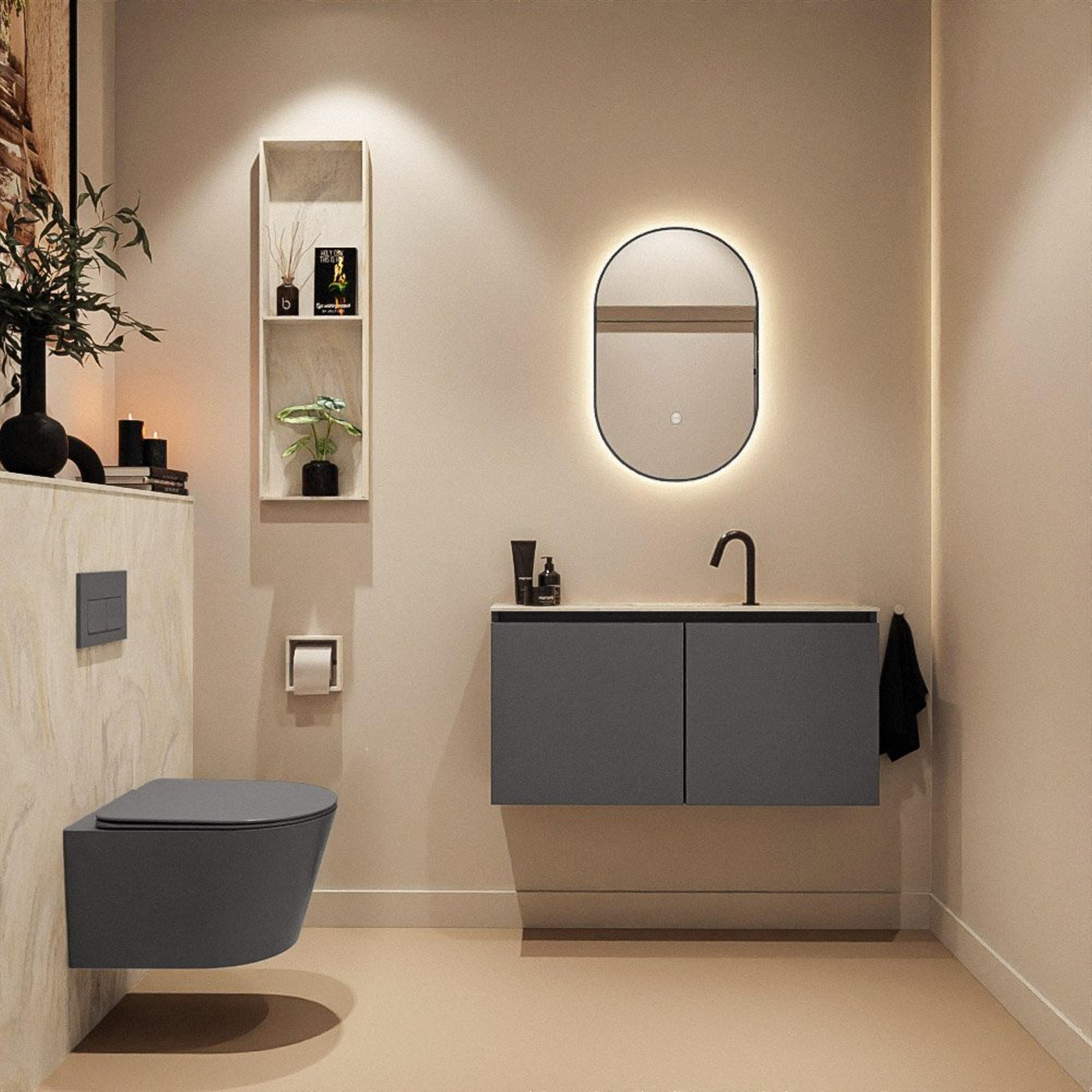 MONDIAZ TURE-DLUX 100cm toiletmeubel Dark Grey. EDEN wastafel Ostra positie midden. Met 1 kraangat.