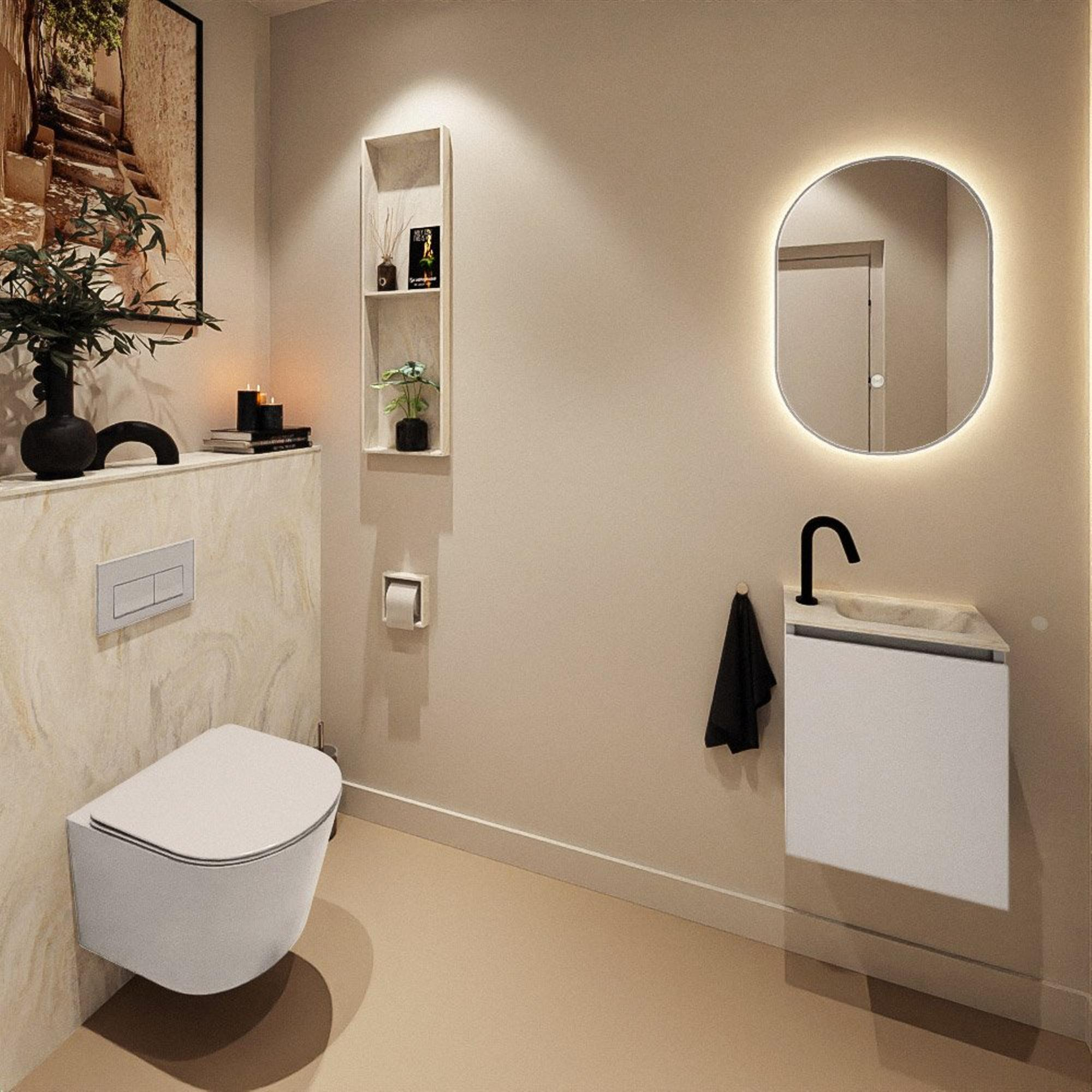MONDIAZ TURE-DLUX 40cm toiletmeubel Linen. EDEN wastafel Ostra positie rechts. Met 1 kraangat.