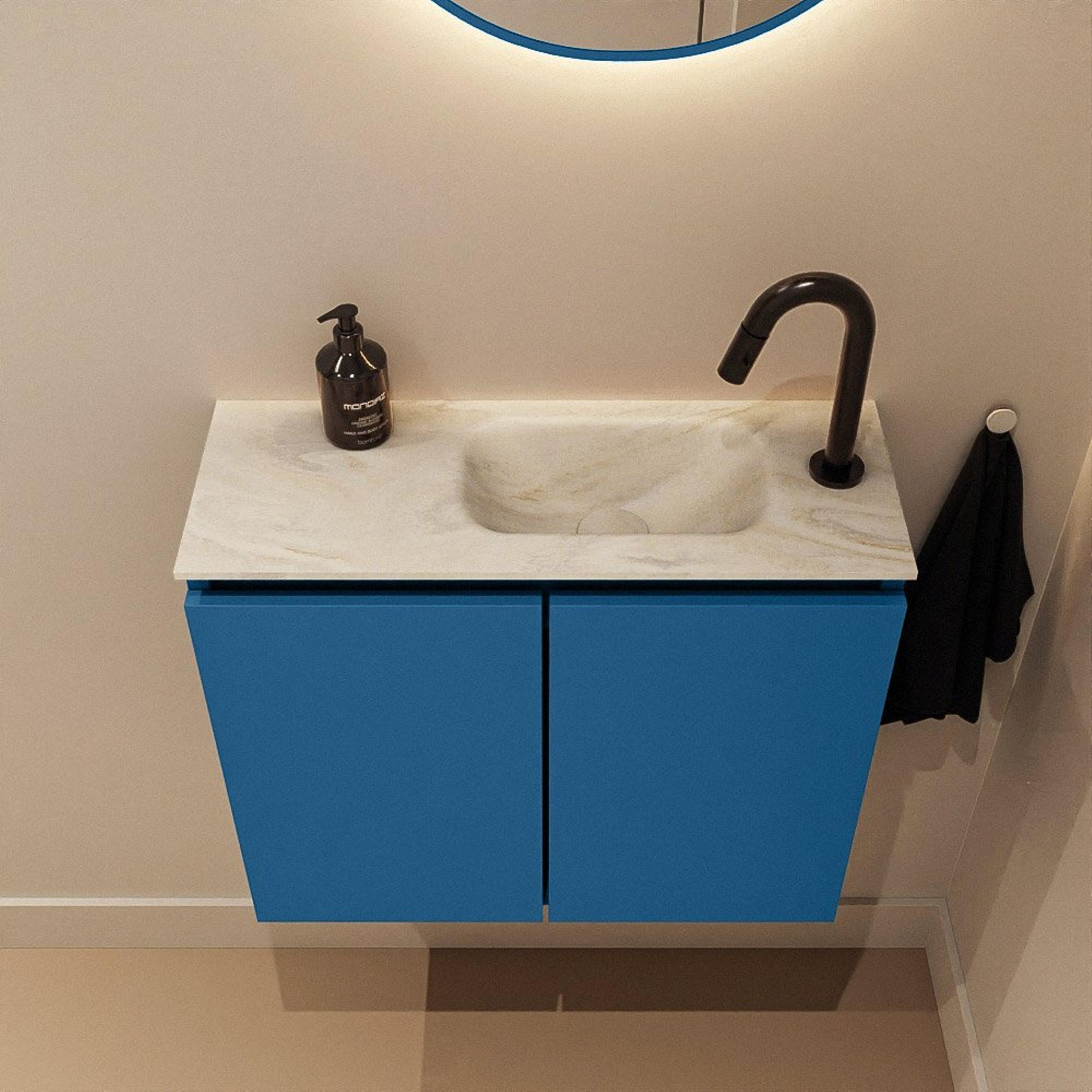 MONDIAZ TURE-DLUX 60cm toiletmeubel Jeans. EDEN wastafel Ostra positie rechts. Met 1 kraangat.