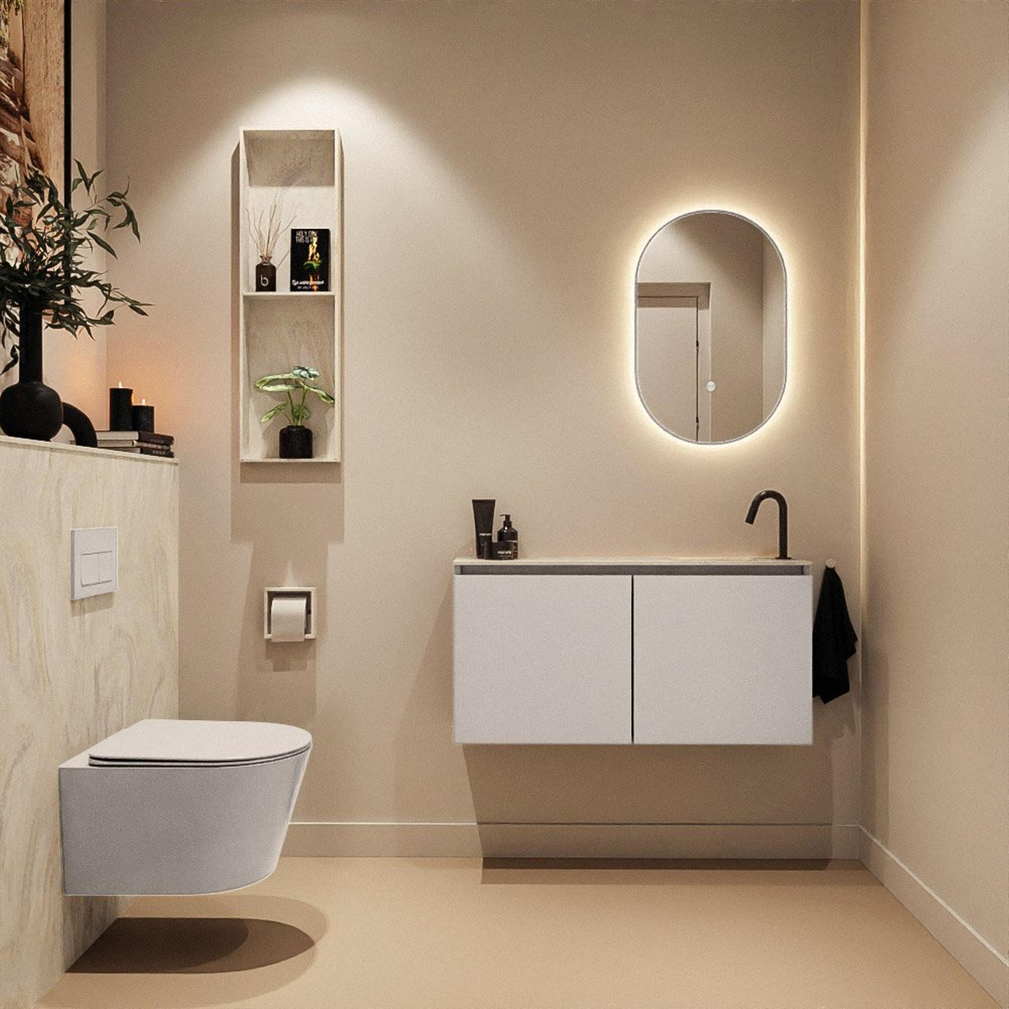 MONDIAZ TURE-DLUX 100cm toiletmeubel Linen. EDEN wastafel Ostra positie rechts. Met 1 kraangat.