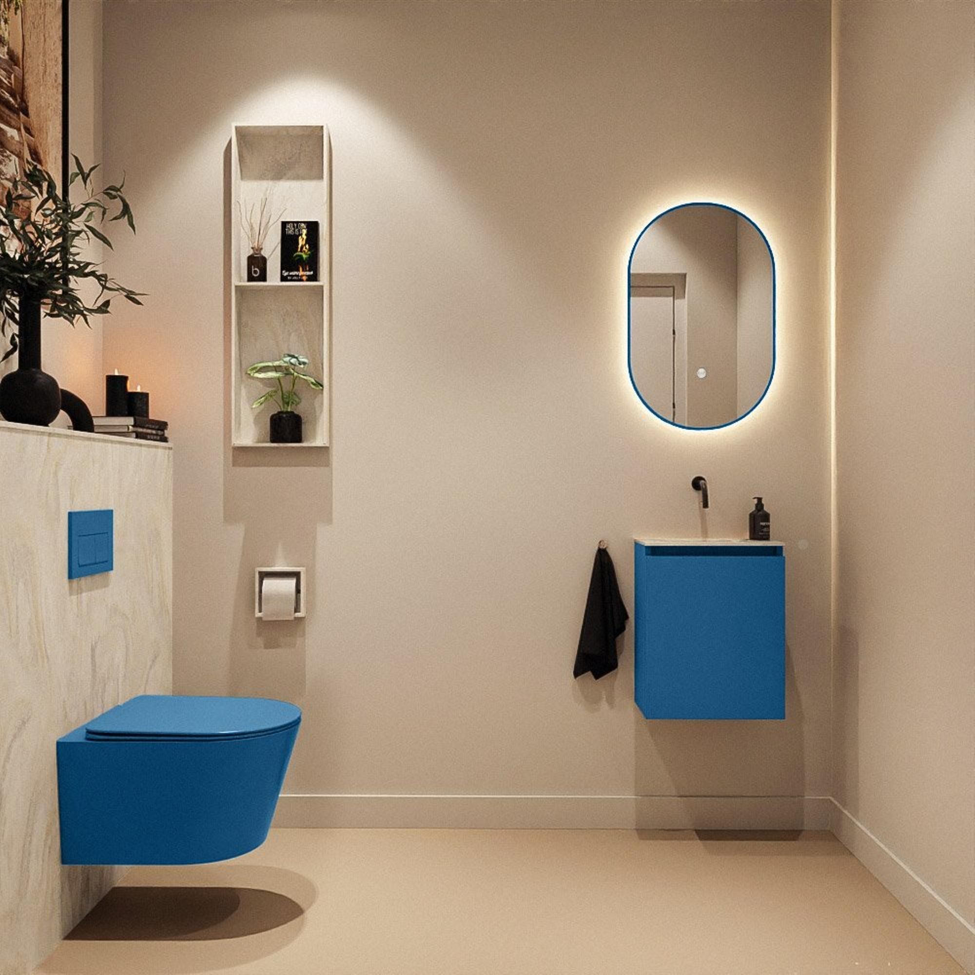 MONDIAZ TURE-DLUX 40cm toiletmeubel Jeans. EDEN wastafel Ostra positie midden. Zonder kraangat.