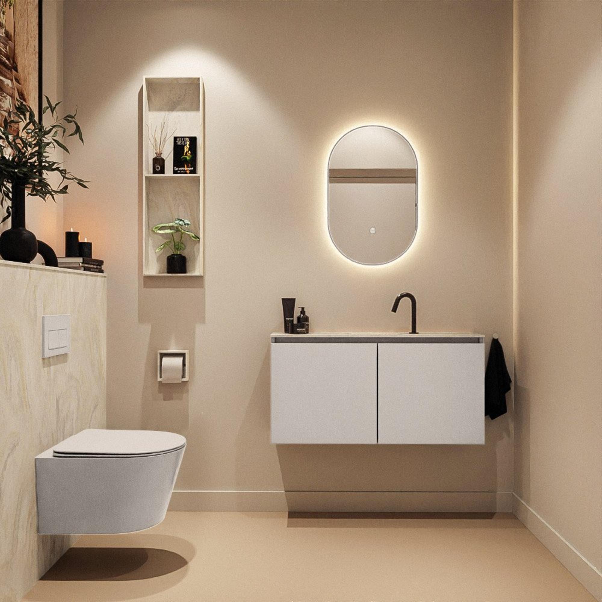 MONDIAZ TURE-DLUX 100cm toiletmeubel Linen. EDEN wastafel Ostra positie midden. Met 1 kraangat.
