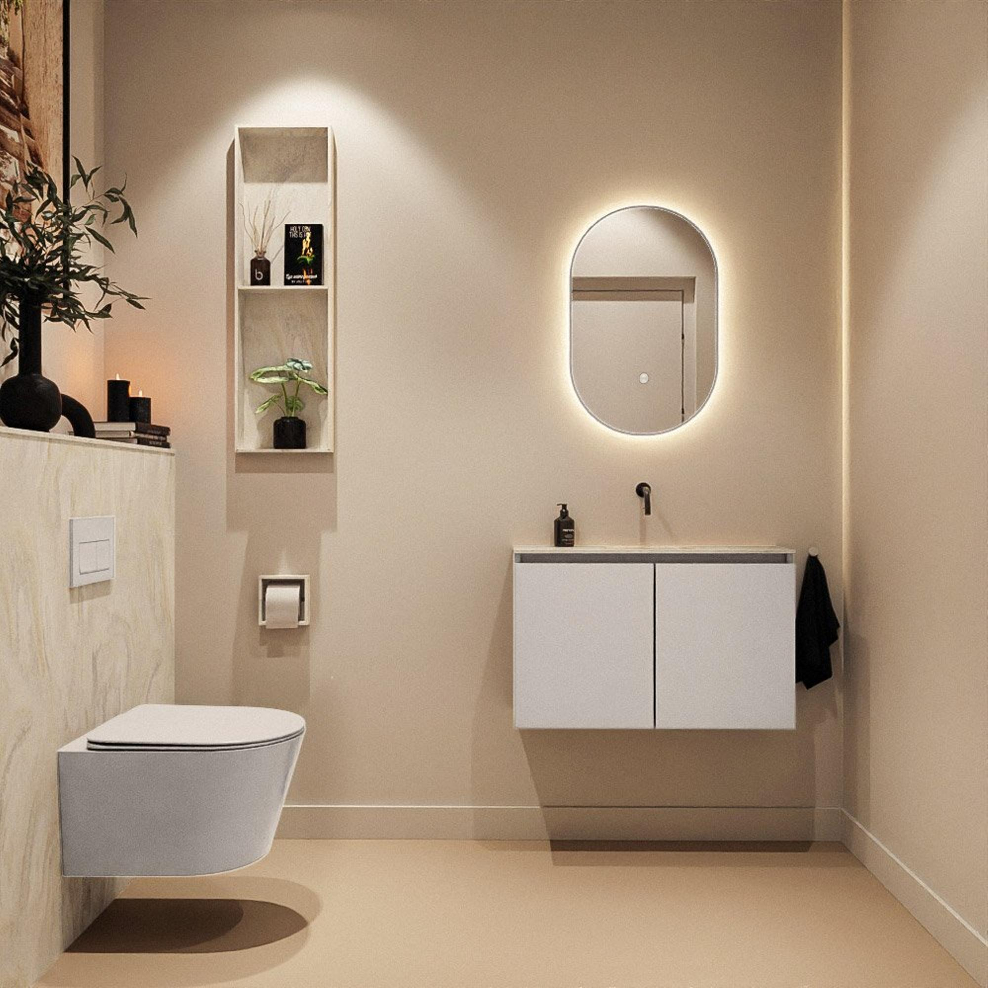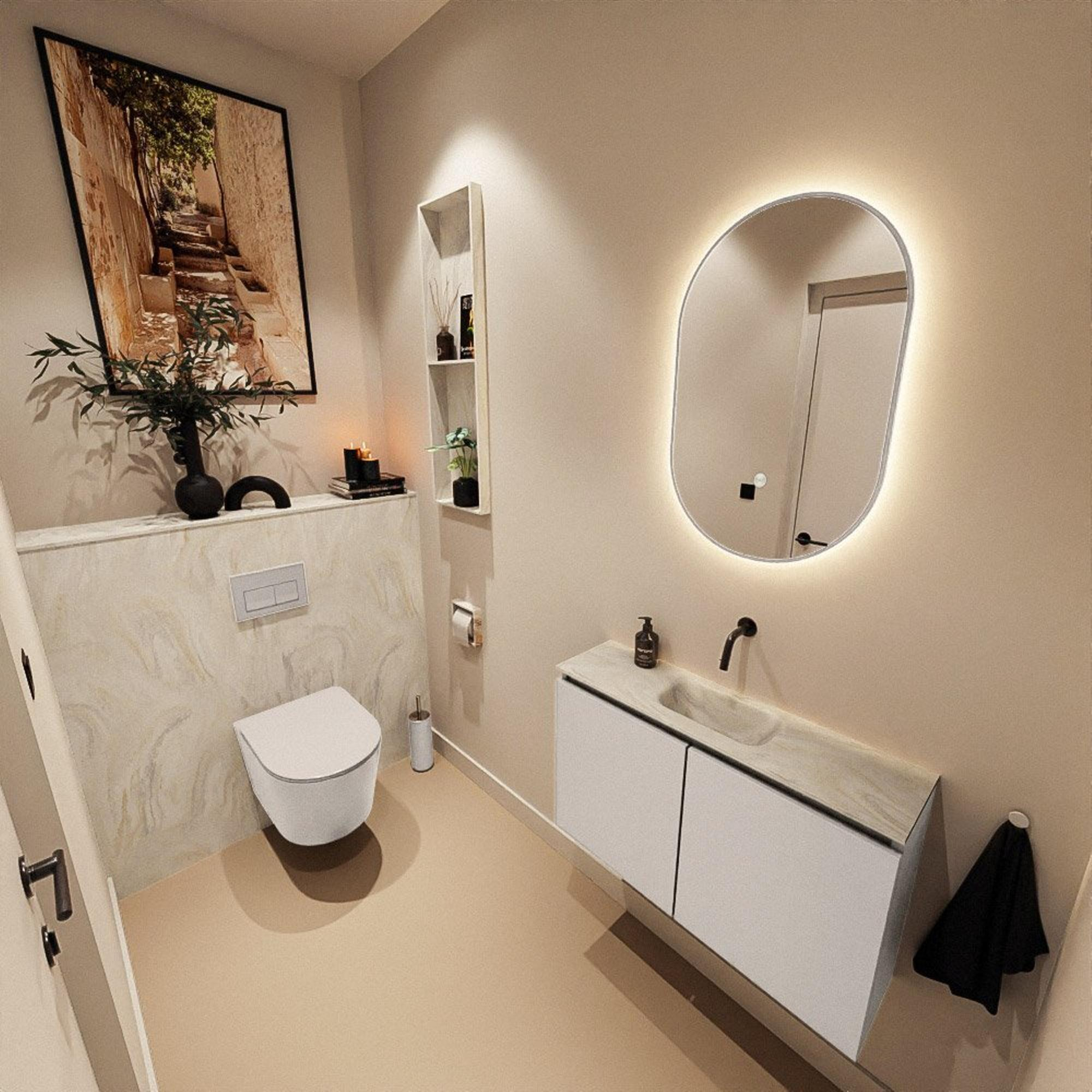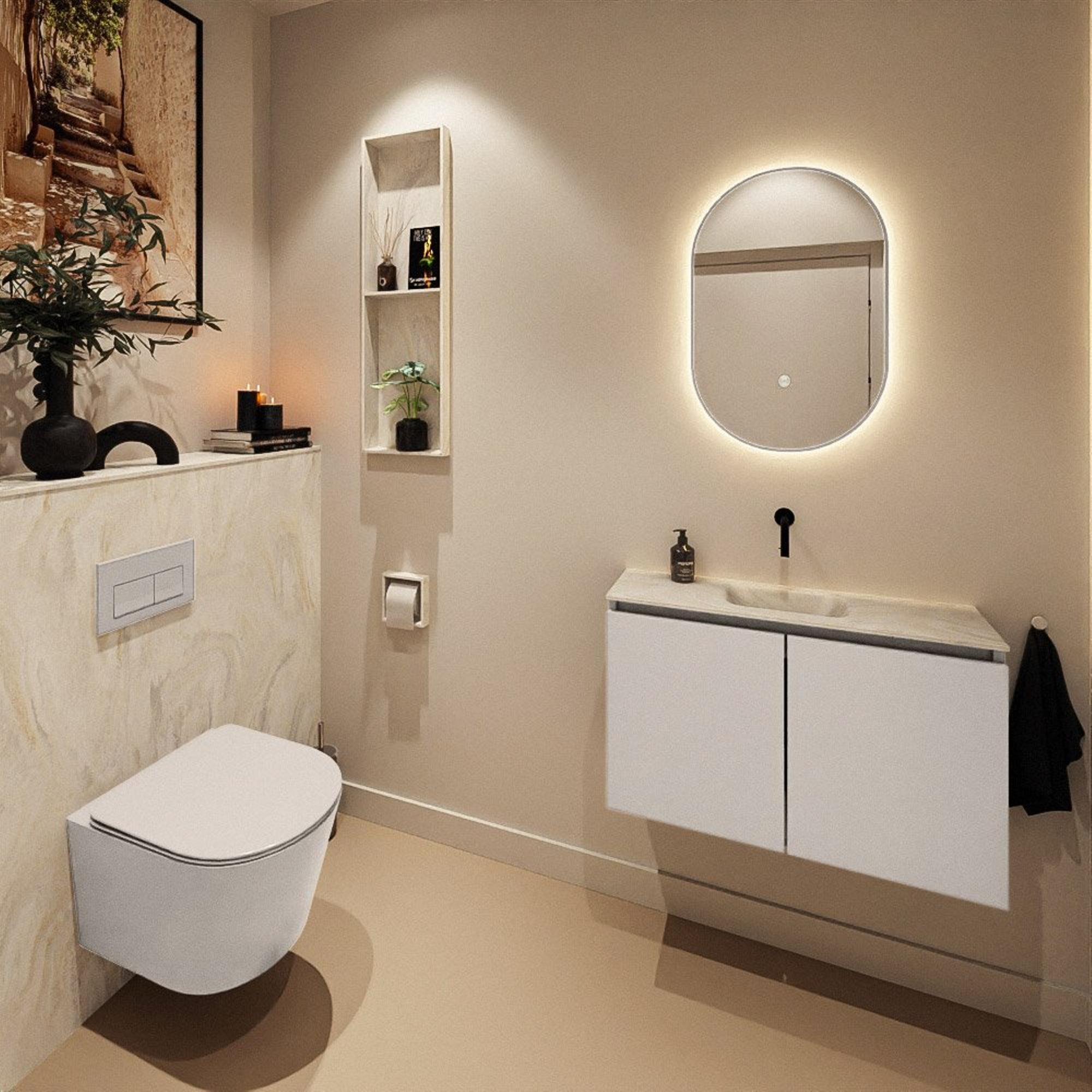 MONDIAZ TURE-DLUX 80cm toiletmeubel Linen. EDEN wastafel Ostra positie midden. Zonder kraangat.