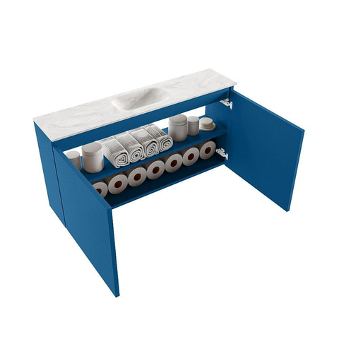 MONDIAZ TURE-DLUX 100cm toiletmeubel Jeans. EDEN wastafel Ostra positie midden. Met 1 kraangat.