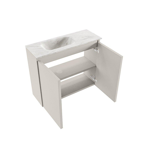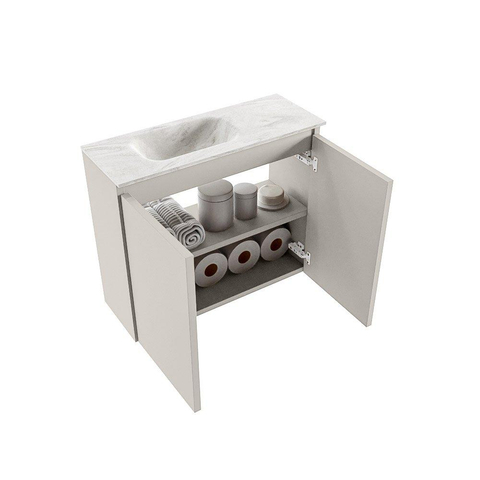 MONDIAZ TURE-DLUX 60cm toiletmeubel Linen. EDEN wastafel Ostra positie links. Zonder kraangat.