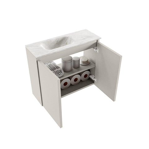 MONDIAZ TURE-DLUX 60cm toiletmeubel Linen. EDEN wastafel Ostra positie links. Met 1 kraangat.