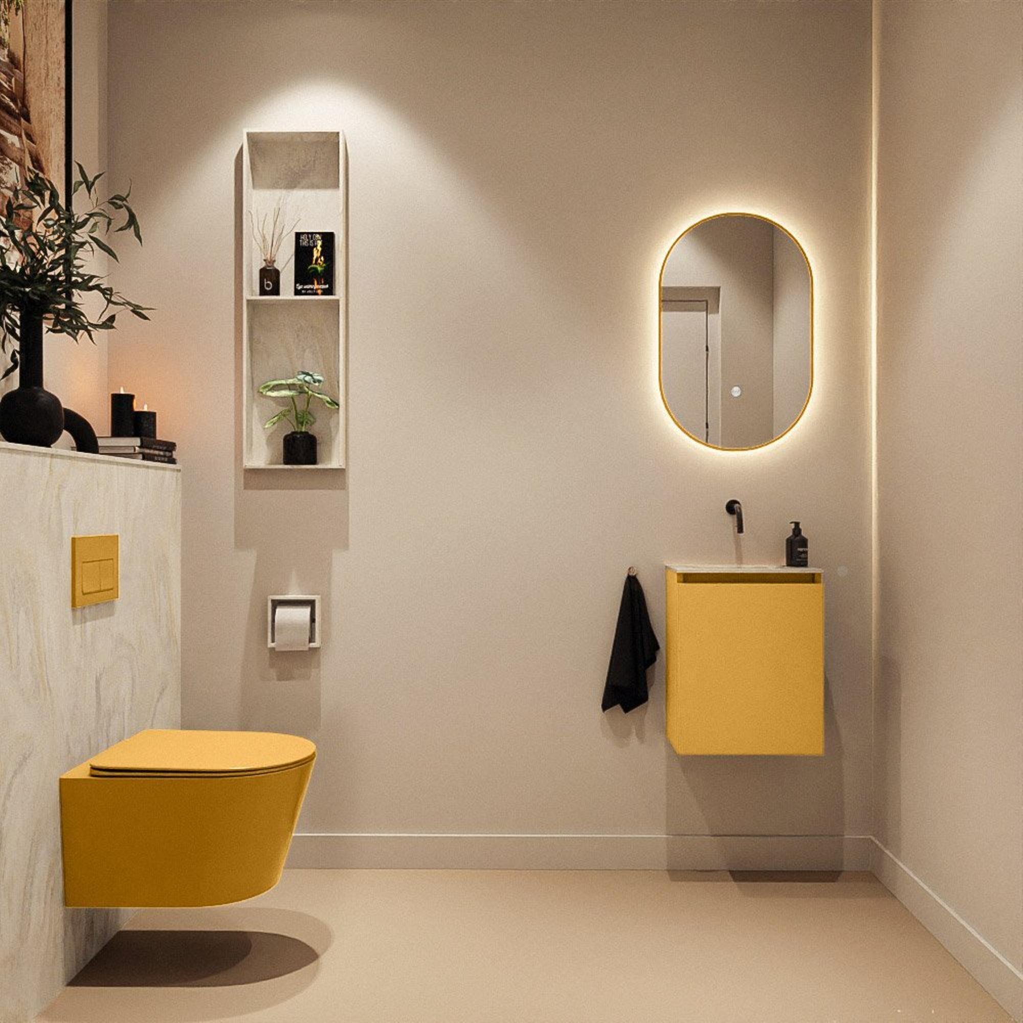 MONDIAZ TURE-DLUX 40cm toiletmeubel Ocher. EDEN wastafel Ostra positie midden. Zonder kraangat.