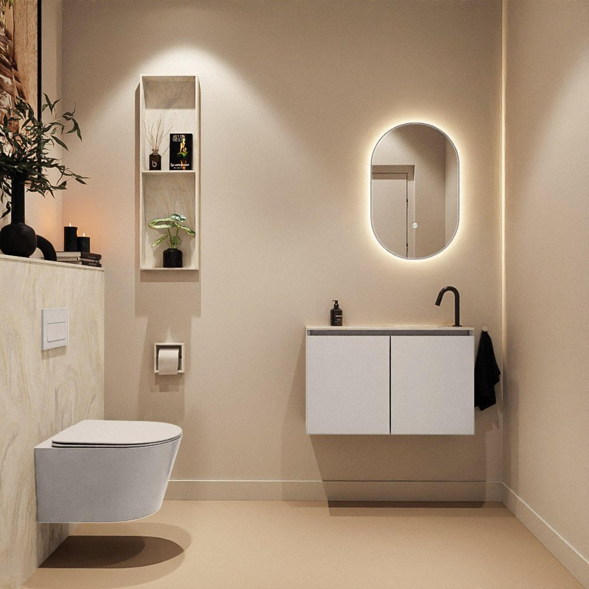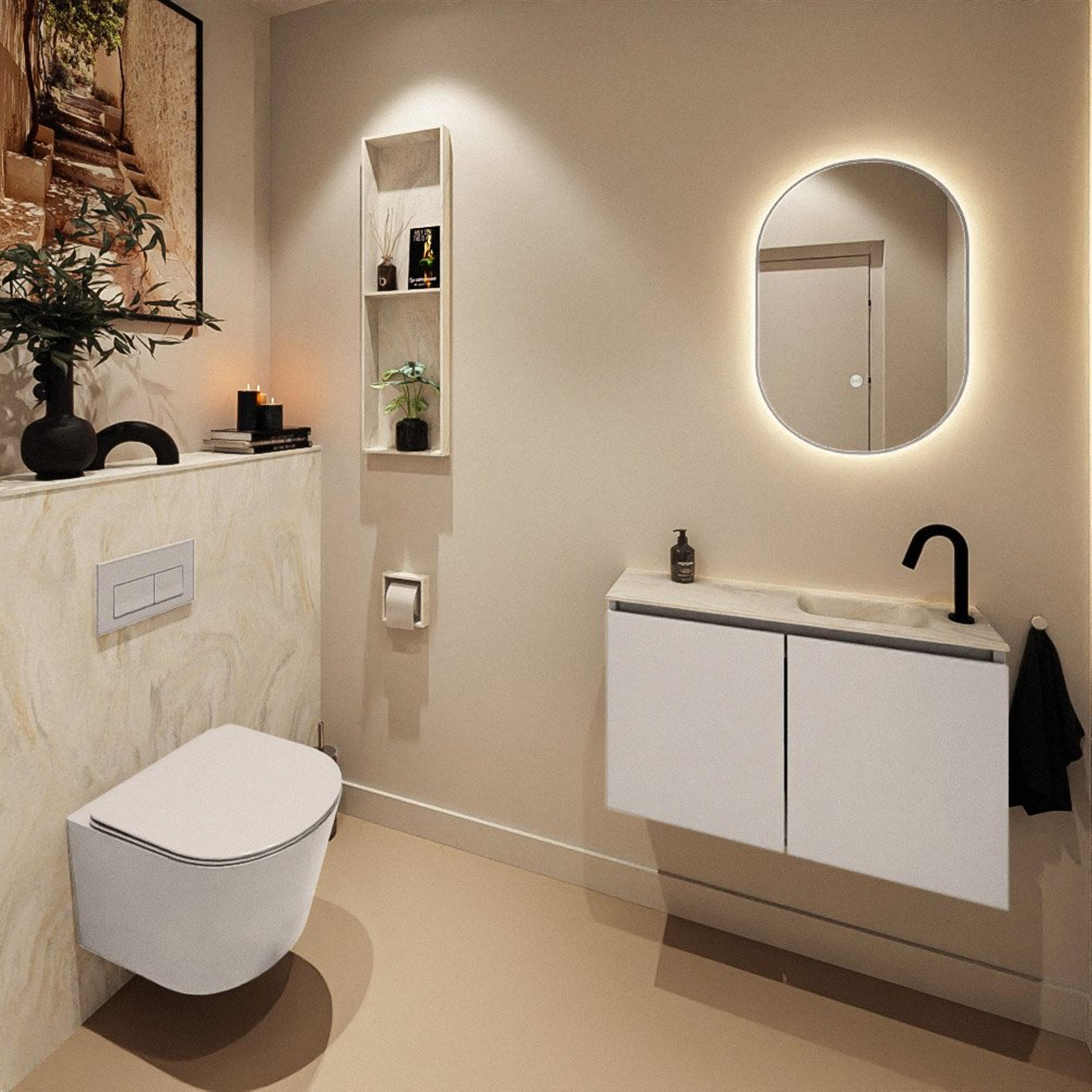MONDIAZ TURE-DLUX 80cm toiletmeubel Linen. EDEN wastafel Ostra positie rechts. Met 1 kraangat.