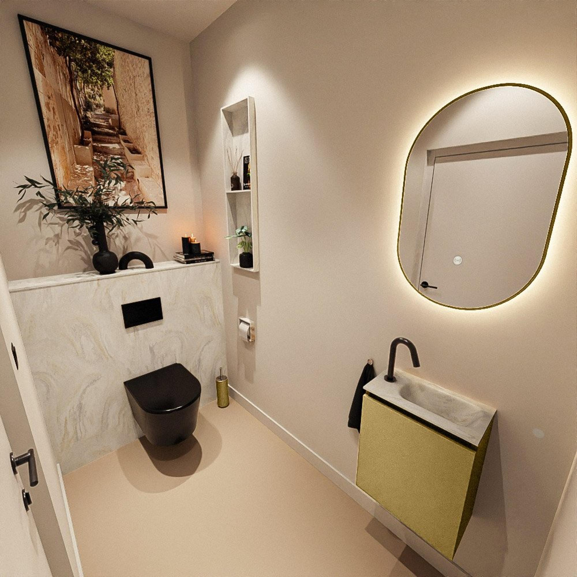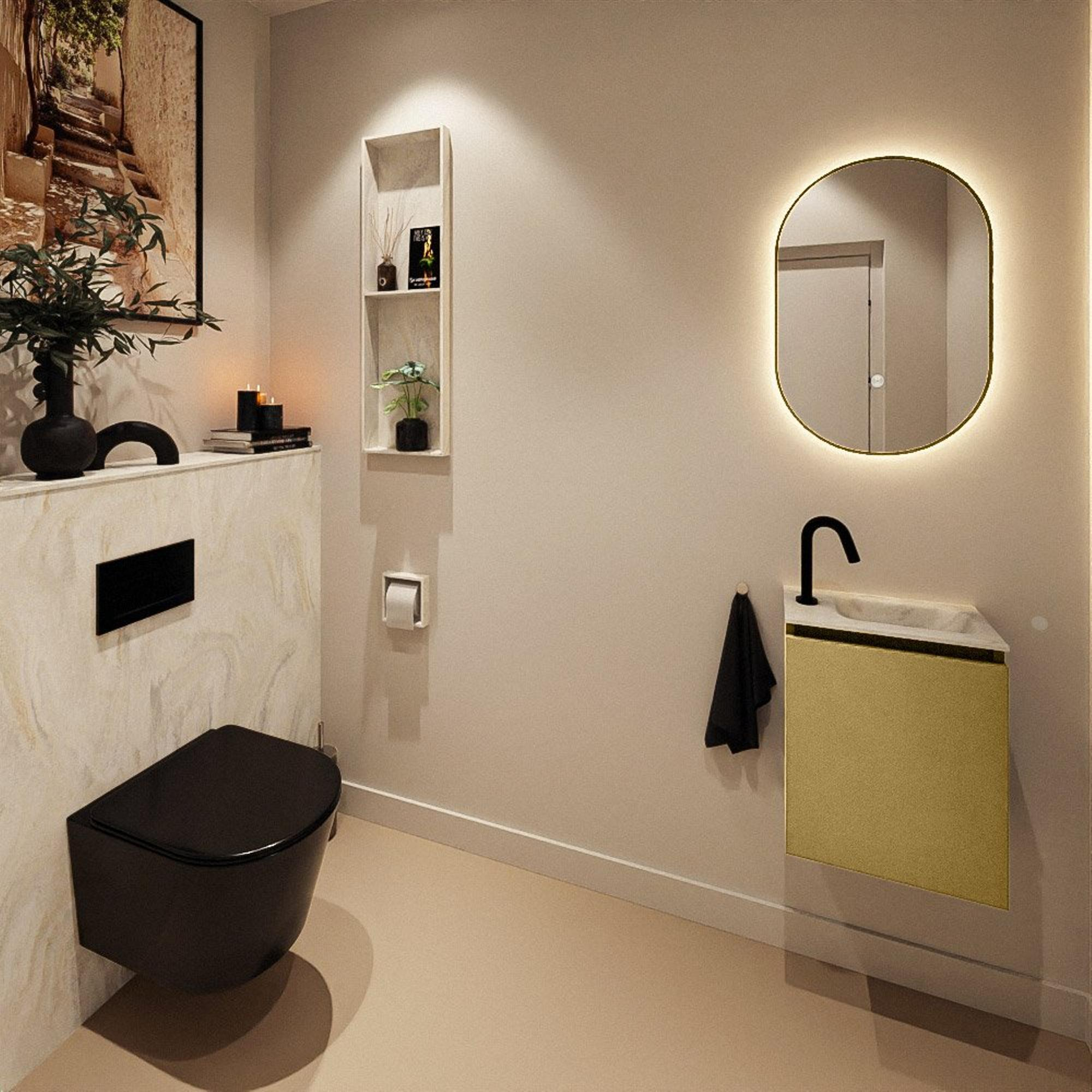 MONDIAZ TURE-DLUX 40cm toiletmeubel Oro. EDEN wastafel Ostra positie rechts. Met 1 kraangat.