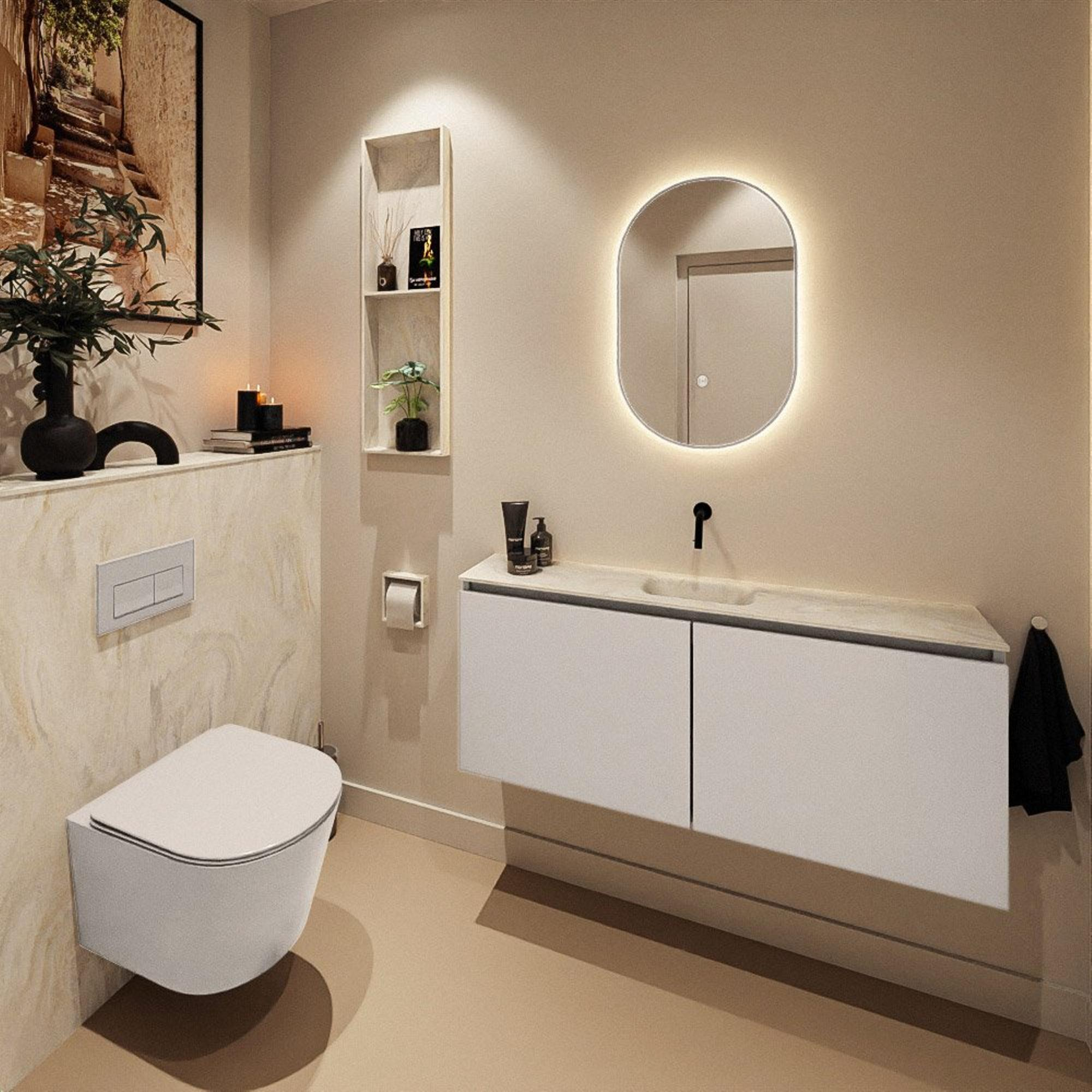 MONDIAZ TURE-DLUX 120cm toiletmeubel Linen. EDEN wastafel Ostra positie midden. Zonder kraangat.