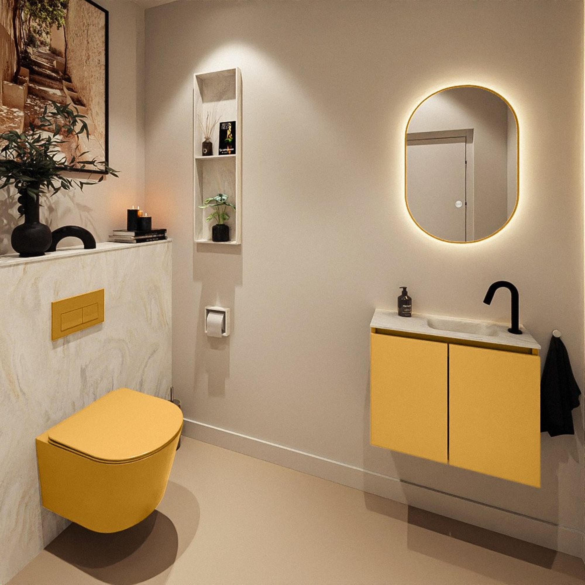 MONDIAZ TURE-DLUX 60cm toiletmeubel Ocher. EDEN wastafel Ostra positie rechts. Met 1 kraangat.