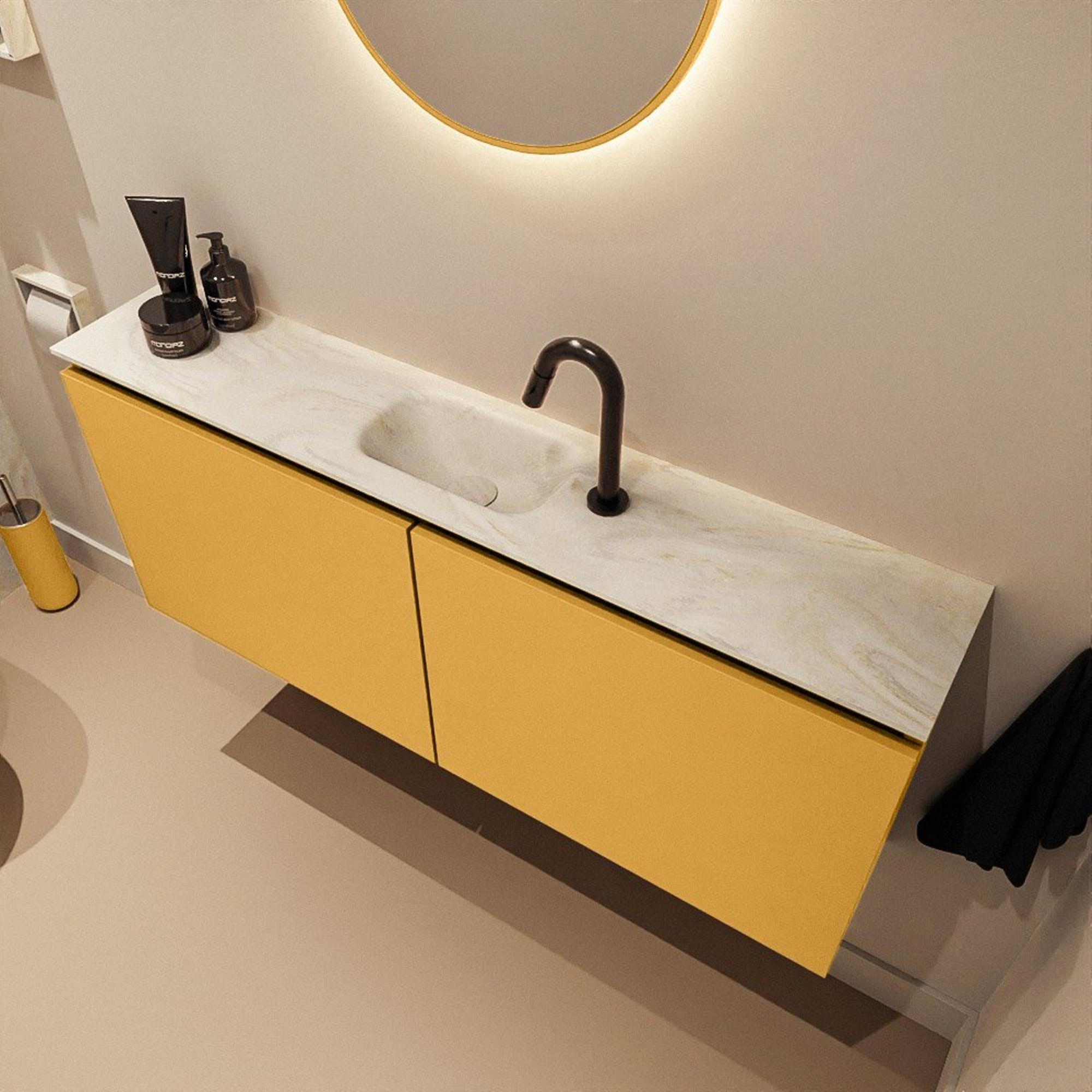 MONDIAZ TURE-DLUX 120cm toiletmeubel Ocher. EDEN wastafel Ostra positie midden. Met 1 kraangat.