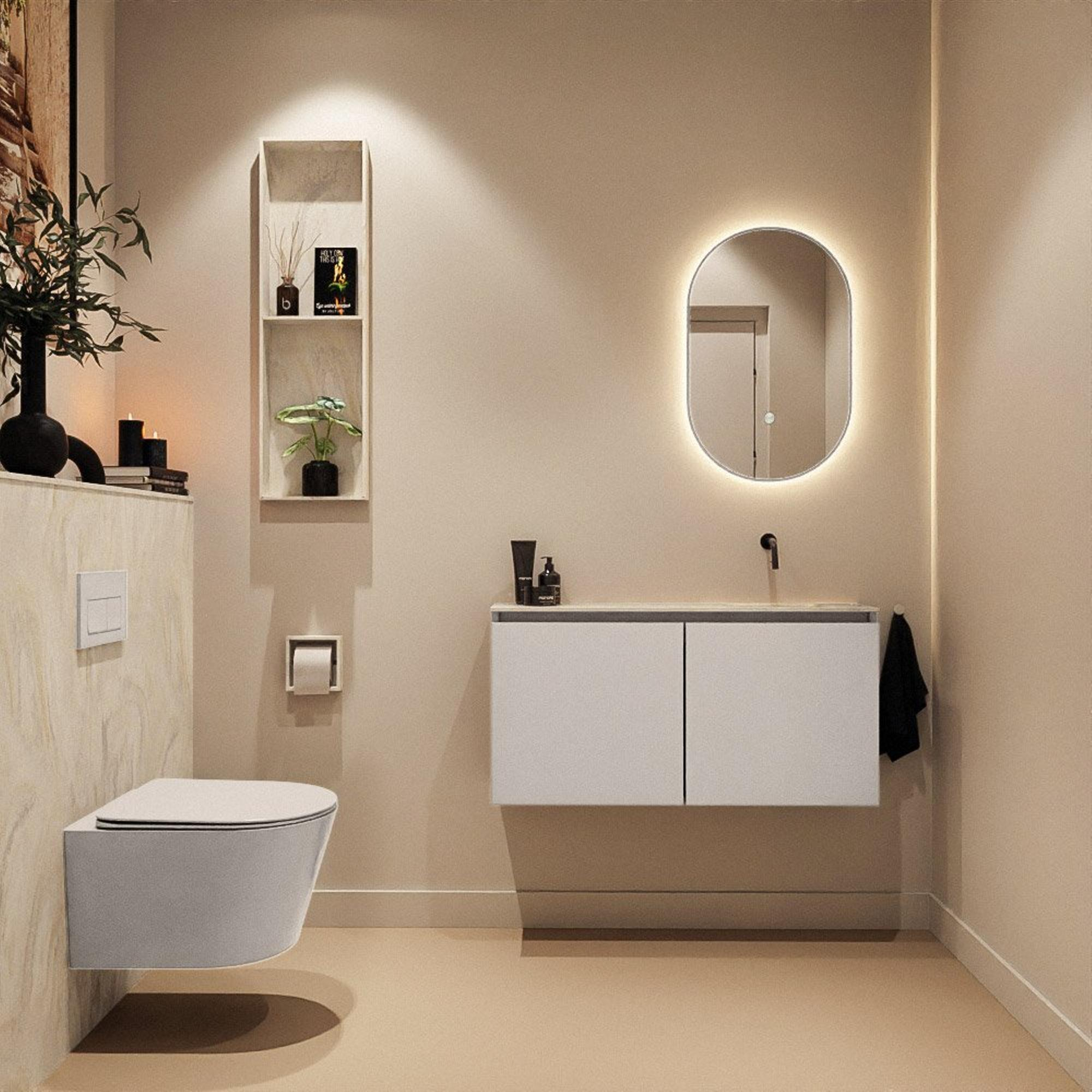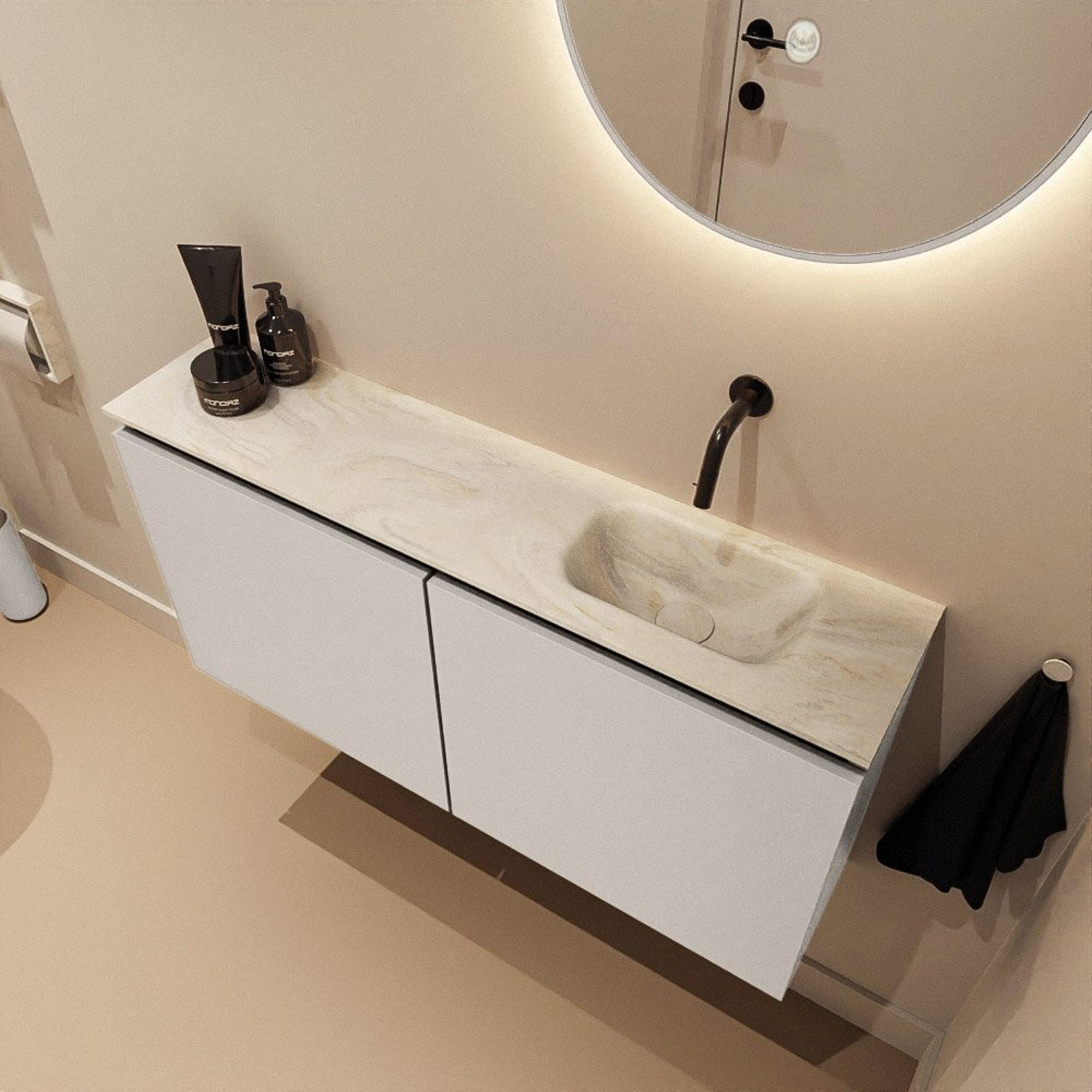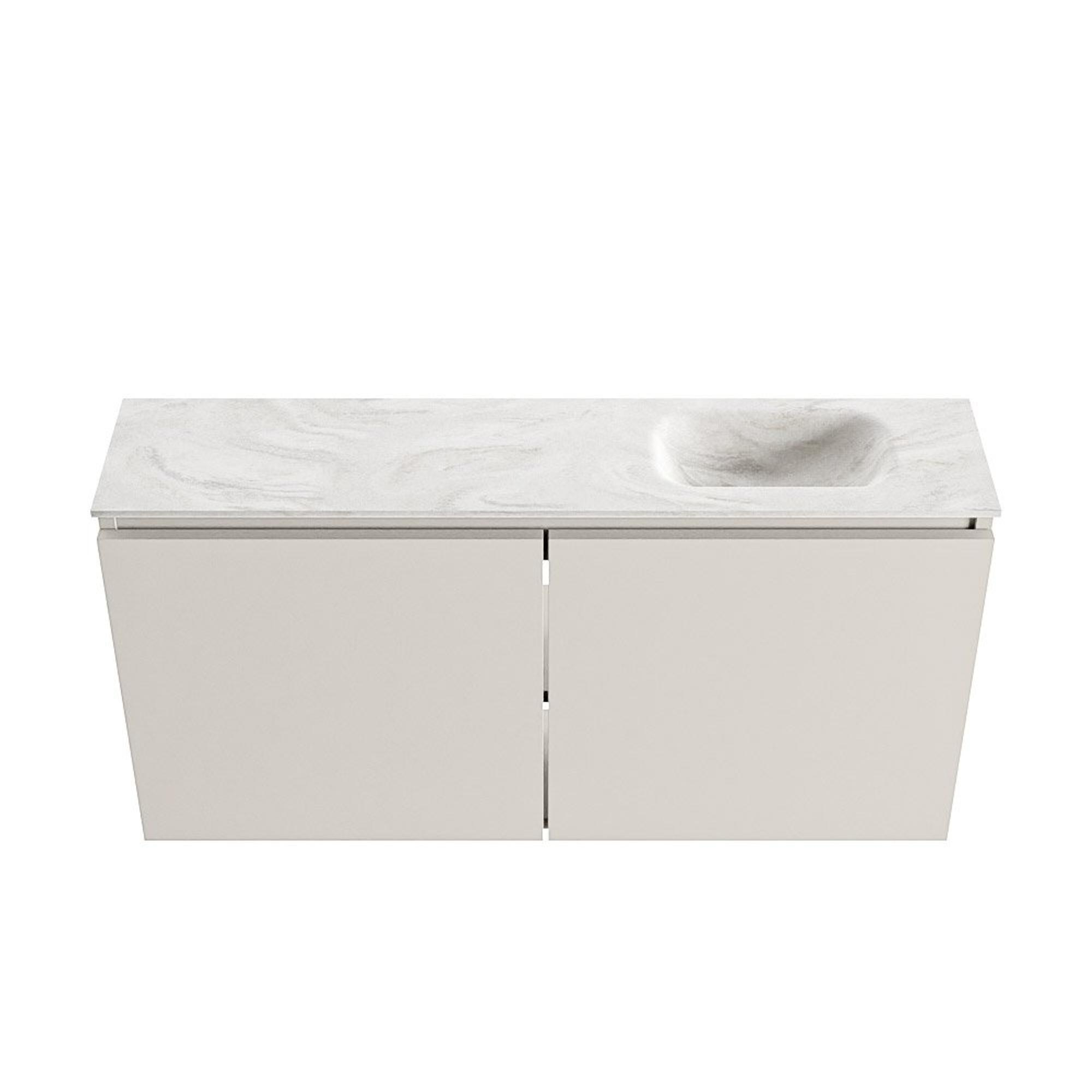 MONDIAZ TURE-DLUX 100cm toiletmeubel Linen. EDEN wastafel Ostra positie rechts. Zonder kraangat.